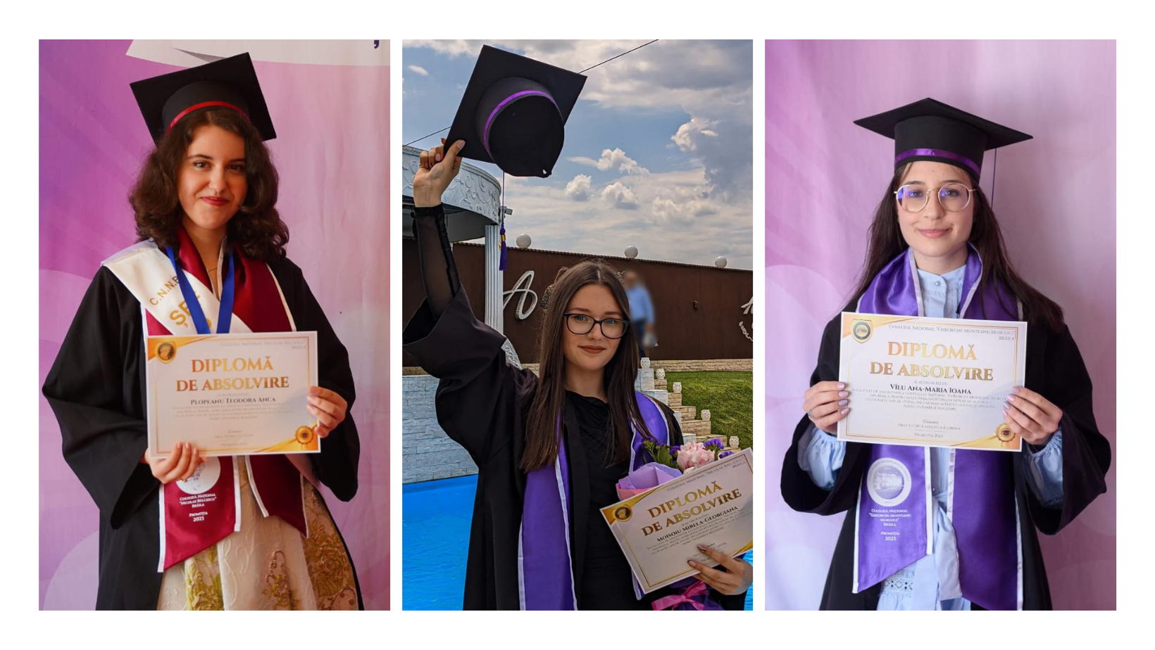 Atunci când s-au afișat primele note la examenul de Bacalaureat de anul acesta, Brăila nu avea nicio medie de 10, cea mai mare fiind 9,96. După contestații, trei candidați au primit media maximă. Este vorba despre Mirela Georgiana Moisoiu și Teodora Anca Plopeanu – absolvente ale Colegiului ”Bălcescu”, specializarea mate-info, și Ana-Maria Ioana Vîlu - absolventă a Colegiului ”Murgoci”, specializarea filologie. Sunt trei fete deosebite, cu povești frumoase, care au depus multă muncă pentru a ajunge la această performanță și care au visuri mărețe pentru viitor. Care sunt acestea aflați în cele ce urmează.