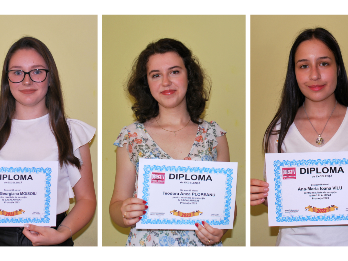 La fel ca la examenul de Evaluare Națională, cotidianul ”Obiectiv – Vocea Brăilei” și Asociația ”Pentru Adevăr” le-a premiat pe cele trei fete care au obținut anul acesta media 10 la examenul de Bacalaureat. Mirela Georgiana Moisoiu, Teodora Anca Plopeanu și Ana-Maria Ioana Vîlu au primit diplome de excelență și premii în bani, fiecare în valoare de 100 lei.