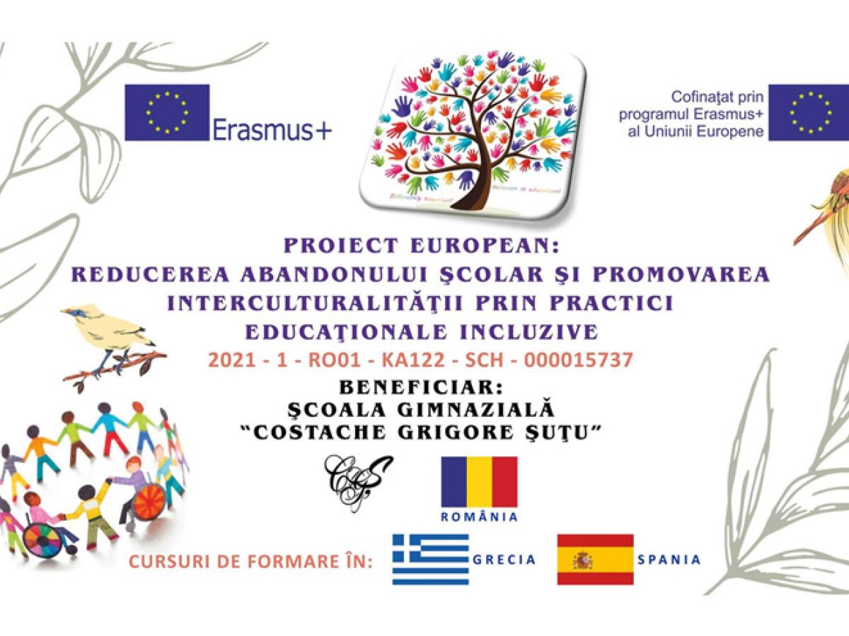 Școala Gimnazială ”Costache Grigore Șuțu” din localitatea Șuțești, județul Brăila a finalizat primul său proiect Erasmus+ cu numărul de referință 2021-1-RO01-KA122-SCH-000015737: Reducerea abandonului școlar și promovarea interculturalității prin practici educaționale incluzive. Prin intermediul proiectului, opt cadre didactice din cadrul instituției de învățământ au participat la două cursuri de formare: Towards the inclusive classroom, organizat de Areadne, Lifelong Learning Centre, în Kalamata, Grecia (iulie 2022) și Multicultural and intercultural education organizat de idevelop Training SL în Malaga Spania (august 2022).