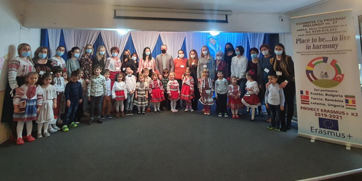 Grădinița cu Program Prelungit nr. 37 Brăila este aproape de încheierea unui alt proiect de colaborare între școli europene prin Programul Erasmus+. Ultima activitate de formare / învățare din cadrul proiectului „Place to be... to live in harmony” a avut loc în perioada 06 - 10.12.2021, gazde fiind preșcolarii și profesorii grădiniței. La activitate au participat fizic partenerii din grădinițele din Ungaria, Turcia și Letonia și virtual prin intermediul aplicațiilor online, partenerii din grădinițele din Bulgaria și Franța. În prezența oficialităților municipalității Brăila și a reprezentanților Inspectoratului Școlar Județean s-a derulat programul schimbului de experiență care a constat în vizitarea grupelor de preșcolari, prezentarea unui program artistic, asistarea la derularea unei secvențe de activitate instructiv-educativă, prezentarea sistemului educațional românesc și a specificului organizațional al grădiniței. Expoziția cu desene realizate de preșcolari inspirate din poveștile proiectului, mascotele și satul cu case tradiționale realizat de profesorii implicați în proiect au reprezentat puncte de atracție și de exemplu de bune practici pentru parteneri.
