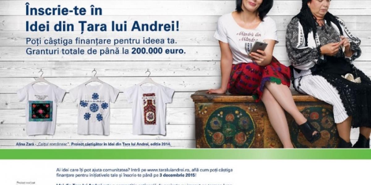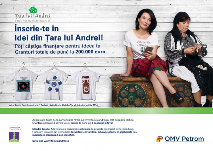 Cea de-a patra ediţie a competiţiei "Idei din Ţara lui Andrei" a fost lansată la începutul acestei luni. Aceasta este, de fapt, un concurs naţional de proiecte pentru dezvoltare comunitară, educaţie pentru angajabilitate, eco-eficienţă sau eco-inovaţie. Românii care oferă idei bune sunt sprijiniţi financiar pentru a-şi finaliza proiectele. Ediţia din 2015 este finanţată de OMV Petrom şi organizată în parteneriat cu Fundaţia "Parteneriat pentru Acţiune Comunitară şi Transformare" (PACT).