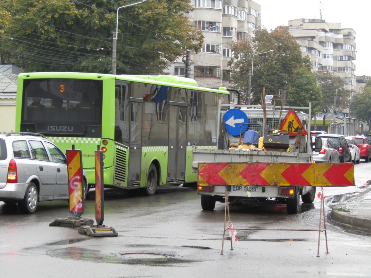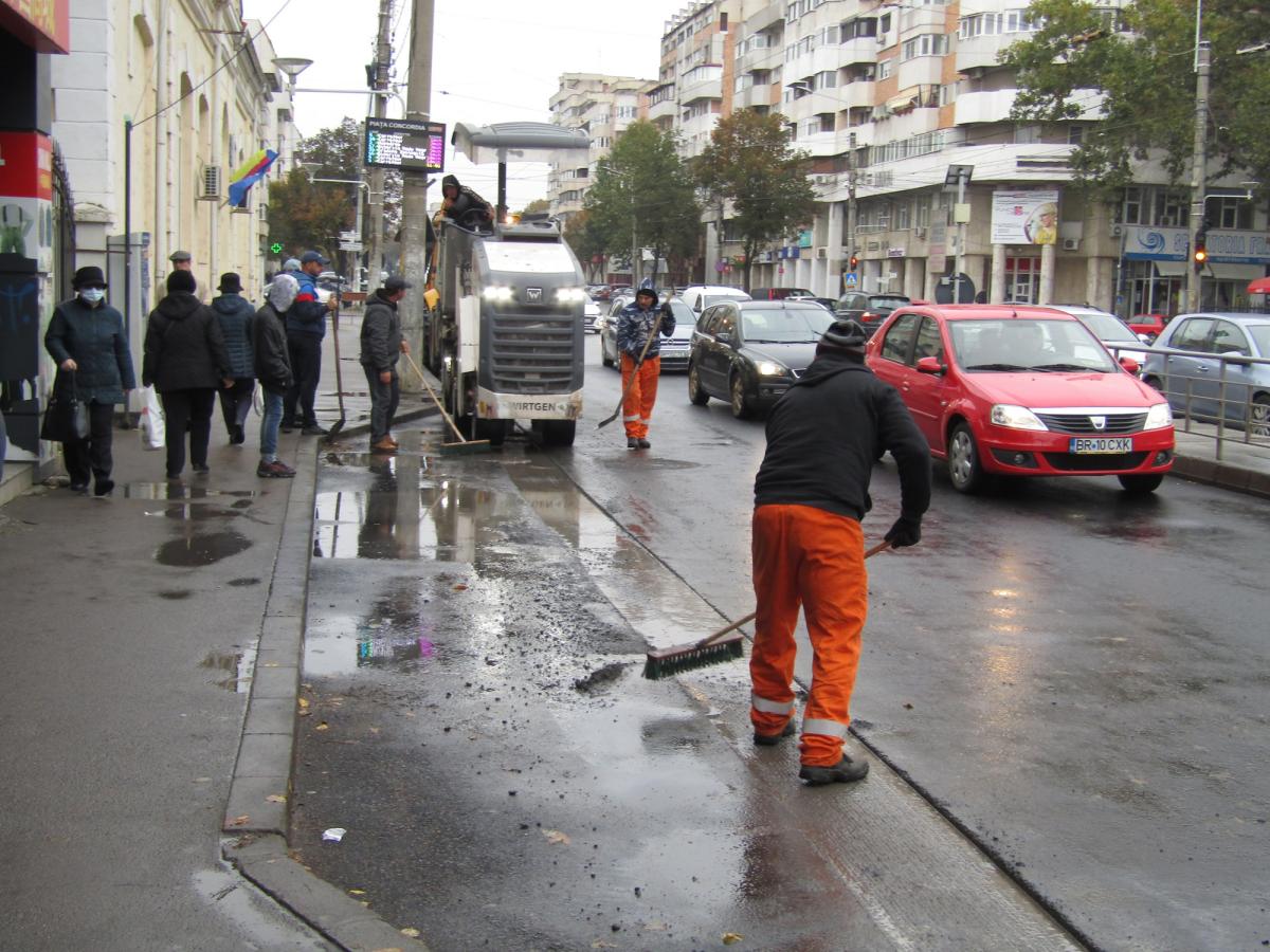 După cum v-am mai informat, firma “Micatis”, care are contract cu Primăria pentru repararea străzilor din municipiu, a acționat, în urmă cu câteva săptămâni, pentru rezolvarea unei probleme mai vechi în zona stației de autobuz de la Piața Concordia. Este vorba despre balta care se forma acolo după fiecare ploaie, din cauza pantei necorespunzătoare a asfaltului. Pentru a-i scăpa pe pietoni și pe călătorii de pe mijloacele auto ale Braicar de stresul reprezentat de acea baltă, municipalitatea a solicitat firmei Micatis să refacă partea carosabilă, cu o pantă corespunzătoare. Drumarii au intervenit, într-o noapte, la orele la care traficul auto este mai redus. S-a rașchetat vechiul asfalt și a fost turnat unul nou, toată lumea sperând că acum apa se va scurge așa cum trebuie către gurile de canalizare. Numai că n-a fost să fie! După cum v-am informat în ediția de ieri a cotidianului nostru, lucrarea n-a trecut proba ploii, precipitațiile din week-end-ul trecut ducând, din nou, la formarea unei ditamai bălți pe carosabil, dar și pe trotuar. Am solicitat o explicație de la directorul Direcției Tehnice din cadrul Primăriei Brăila, Marius Termegan. “Nu am fost în Brăila când s-a executat lucrarea. Dar, verificăm și se rezolvă! Probabil este vorba de felul cum este amplasat geigerul de acolo…”, ne-a declarat, luni, 11 octombrie, directorul Termegan. Ieri, cotidianul nostru a atras atenția despre eșecul echipei de lucrători ai firmei Micatis, iar după apariția articolului, deci tot ieri, miercuri, 13 octombrie, firma în cauză a purces la refacerea lucrării. Practic, iar s-a răzuit asfaltul, pentru a se turna un strat nou, cu diferența că de data asta s-a lucrat în plină zi, în ciuda traficului auto intens. Până la ora prânzului, s-a trecut la îndepărtarea apei cu mătura și apoi la răzuirea asfaltului, între străzile Griviței și Mihai Bravu.