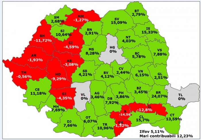 La polul opus, 27 de judeţe, inclusiv Brăila, au reuşit să-şi depăşească rezultatele înregistrate anul trecut, în sensul că sumele colectate în primele 3 luni din acest an au fost mai mari decât în 2013. Brăila a înregistrat o creştere de 24,07%, urmată la aproape 10 puncte de Călăraşi, cu 15,7%, Suceava cu 15,09% şi Constanţa cu 13,59%.