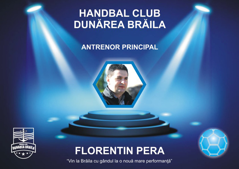 De ieri, HC Dunărea are un nou antrenor principal, pe Florentin Pera, cel care în sezonul competiţional 2016-2017 a activat pe acelaşi post la Universitatea Cluj. Noul tehnician are 37 de ani, iar singurele rezultate notabile le-a obţinut cu HCM Roman, în perioada 2013-2016 când, cu această formaţie, a disputat două finale ale Cupei României şi s-a calificat de trei ori în cupele europene. În 2012, Pera a fost desemnat antrenor secund al naţionalei de senioare a României.