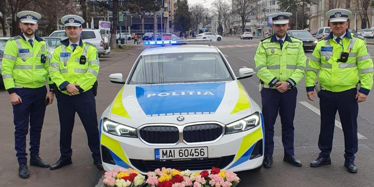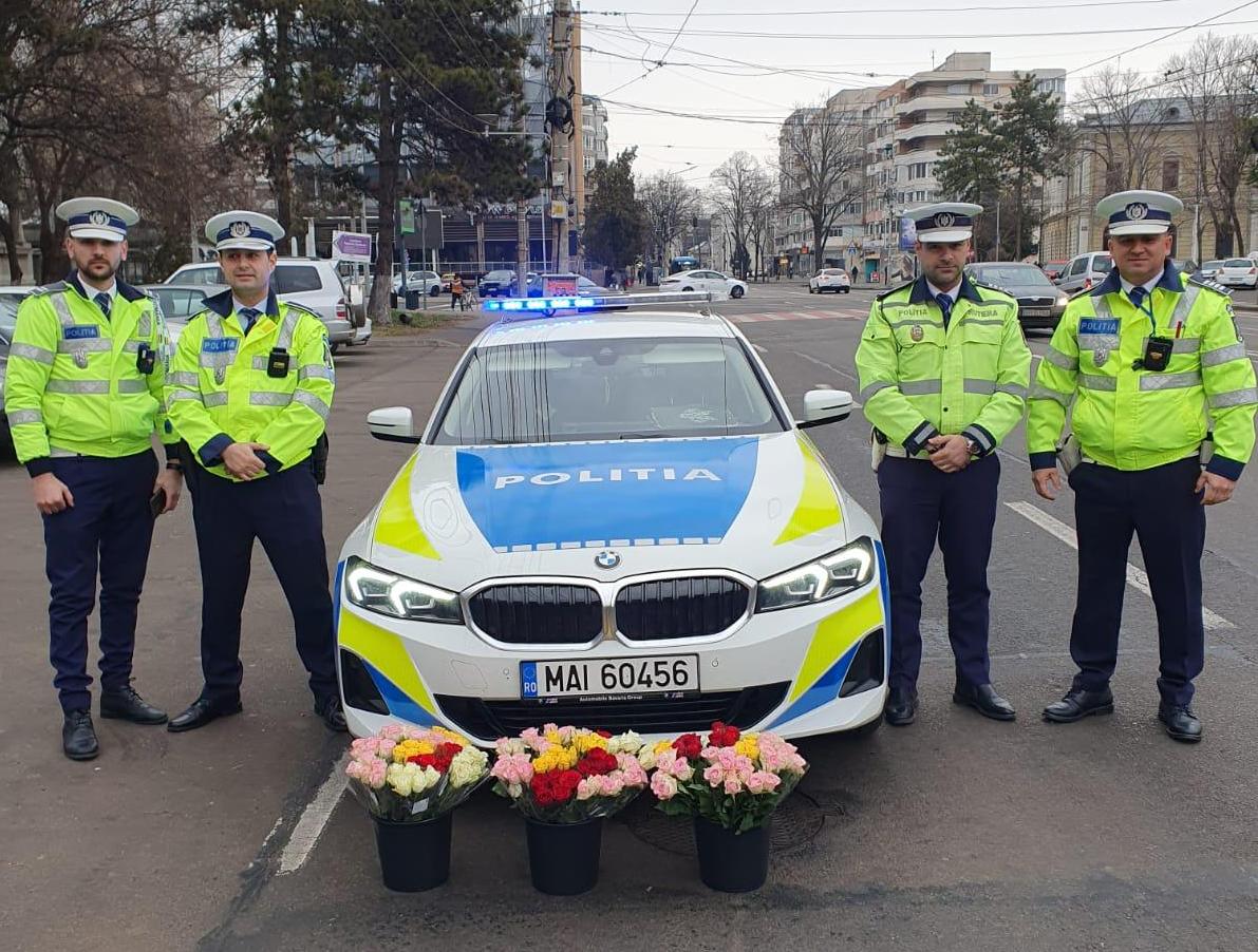 Polițiștii le-au întâmpinat pe brăilence cu flori, un simbol al primăverii!