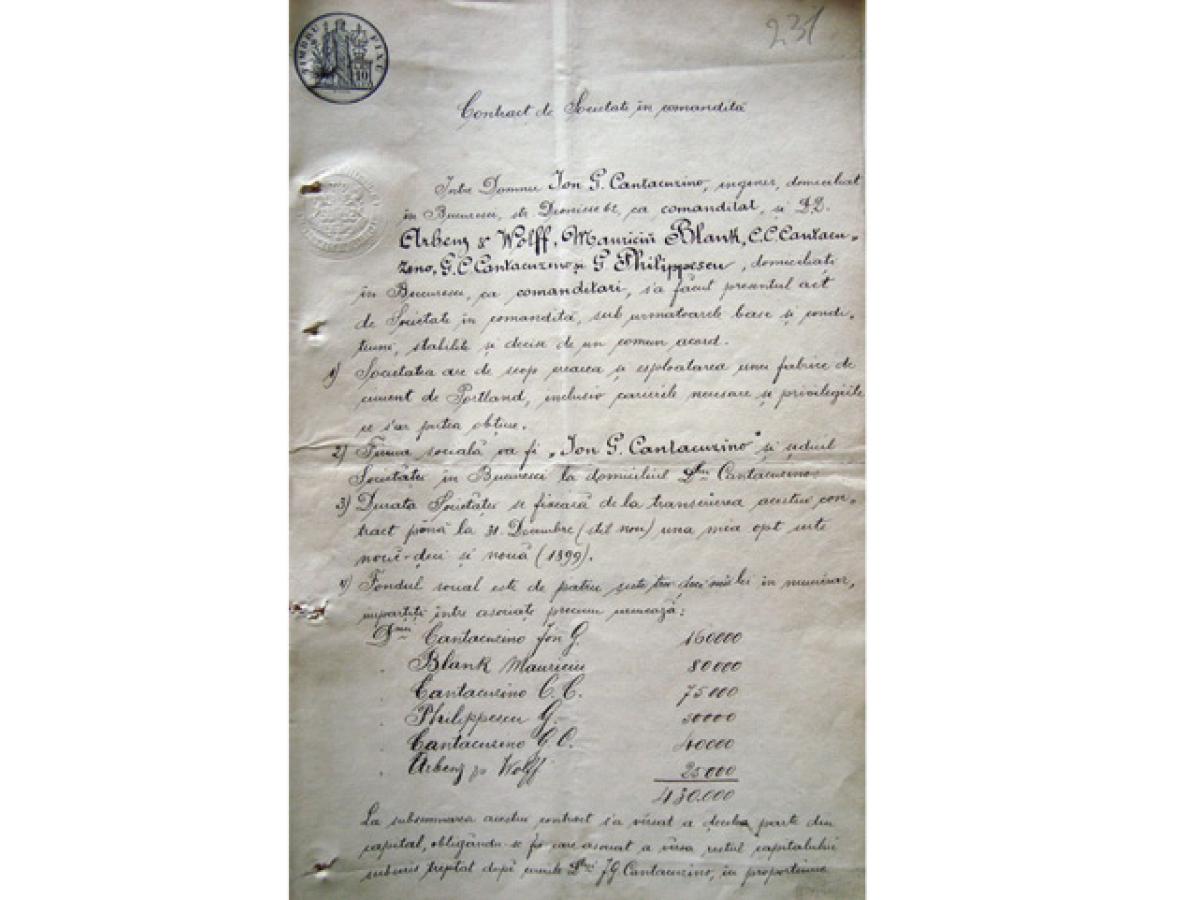 Potrivit Memoriului realizat cu prilejul Expoziţiei Universale de la Paris, din anul 1900 – unde fabrica a obţinut Medalia de Argint – „ing. loan G. Cantacuzino întreprinse introducerea în România a fabricaţiunei cimentului şi stabili, în 1888, o societate în comandită sub numele său de comanditat, cu capital de 557.000 de lei. De la începutul lui 1889, lucrările fură pornite şi Fabrica de ciment Portland din Brăila începu a funcţiona în iulie 1890 (...) Rezerve importante făcute în fiecare an au permis transformarea şi creşterea fabricii”. Aşa se face că, în anul 1899, capitalul total investit în instalaţii se ridica la deloc neglijabila sumă de 1.906.614 lei. Rezultatele remarcabile obţinute au fost răsplătite de statul român: fabrica a primit Diploma de Onoare la Expoziţia de la Bucureşti, din 1894.