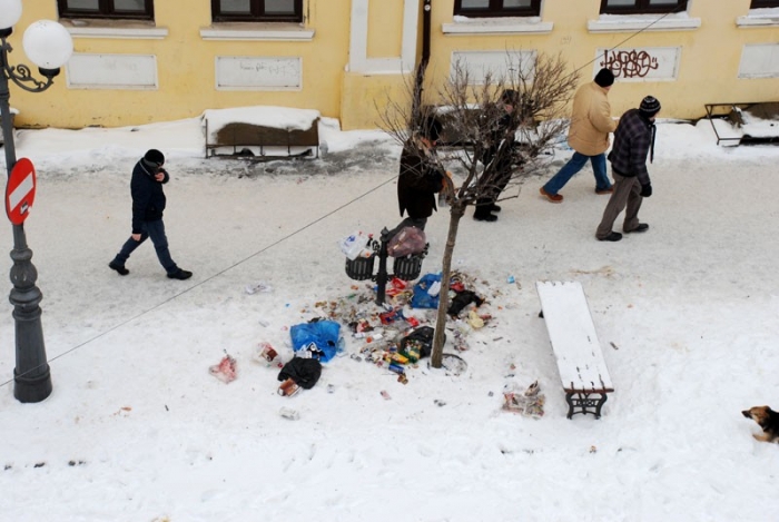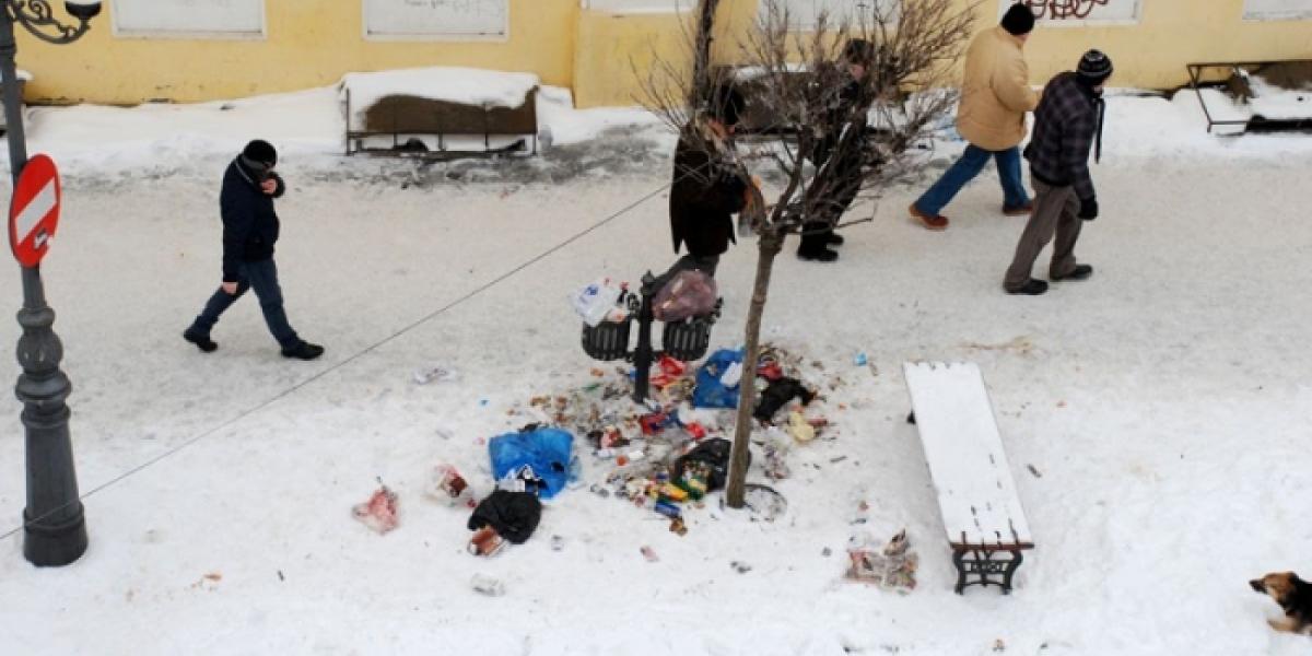 Aflată în plin centru al Brăilei, strada Mihai Eminescu, fosta Regală, ar trebui să fie o adevărată emblemă a oraşului, zona de promenadă care să-i relaxeze pe brăileni şi să îi impresioneze pozitiv pe turişti. În loc de asta, Str. Mihai Eminescu are un aspect dezolant care, după ninsorile de dinaintea Revelionului, a devenit de-a dreptul dizgraţios. Luni dimineaţă, din pubelele stradale se revărsau maldăre de gunoaie care, împrăştiate de câini, se amestecau cu zăpada frământată şi murdară, printre picioarele trecătorilor. Tot acest gunoi provenea de la locatarii clădirilor istorice de pe Str. Mihai Eminescu, dar şi de pe străzile Petru Maior şi Mihail Sebastian sau Goleşti. Pentru că operatorii de salubritate au întârziat cu colectarea deşeurilor, unii dintre aceşti chiriaşi s-au debarasat de pungile de gunoi din locuinţă aruncându-le la pubelele stradale. Care pubele nu au fost destinate pentru aşa ceva, ci doar pentru a le oferi posibilitatea pietonilor să arunce resturi de ambalaje sau mucuri de ţigară. În fapt, pe Str. Mihai Eminescu se întâmplă frecvent, nu doar în perioada depunerilor de zăpadă, ca pubelele stradale să dea pe dinafară de astfel de resturi aruncate de locatari, dar şi de chiriaşii spaţiilor comerciale din zonă.