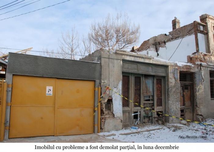 După ce, ani la rând, a pus în pericol familia care locuia în curtea învecinată, un imobil vechi situat pe Str. Piaţa G-ral Eremia Grigorescu, fostă Str. Piaţa Poporului - o străduţă situată paralel cu Str. G-ral Eremia Grigorescu (fostă Gării) - a fost demolat recent. A fost nevoie, însă, ca o bucată de zid să cadă peste garajul din curtea alăturată, fiind la un pas să strivească un om, pentru ca autorităţile locale să ia problema în serios şi să dispună măsuri în consecinţă. Reamintim că incidentul cu zidul prăbuşit s-a întâmplat la sfârşitul lunii noiembrie. Atunci, cărămizile desprinse din peretele cu pricina au căzut peste un garaj, avariind serios un autoturism. Incidentul s-a petrecut la doar câteva minute după ce proprietarul maşinii ieşise din garaj. Dacă ar fi întârziat puţin înăuntru, acesta şi-ar fi putut găsi sfârşitul din cauza mormanului de moloz care s-a prăvălit din senin prin tavan.