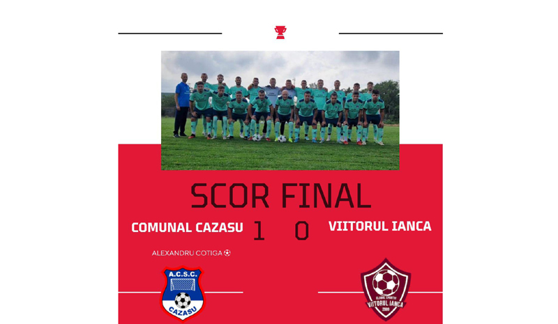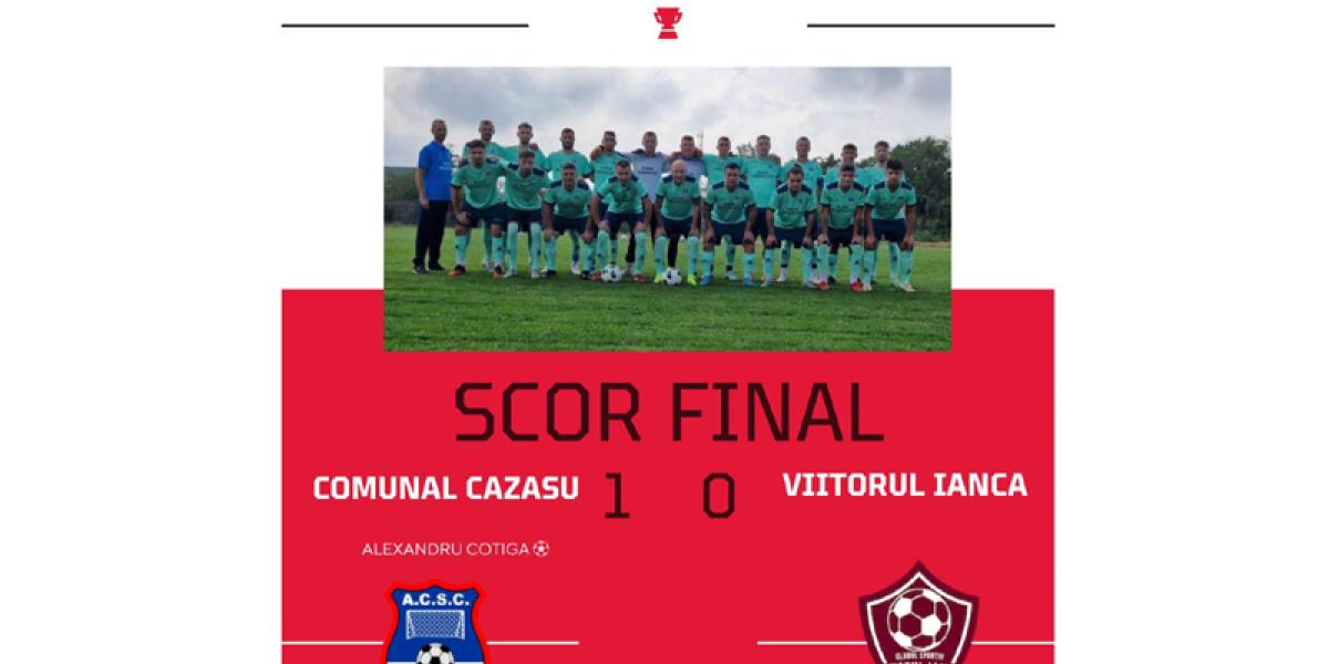 Derby-ul rundei a 8-a a Ligii a IV-a s-a derulat la Cazasu între formația gazdă, ACS Comunal Cazasu, locul al 3-lea și Viitorul Ianca, locul al 2-lea. Jocul a fost echilibrat până în minutul 75, moment în care Custură, de la oaspeți, a primit al doilea cartonaș galben și implicit pe cel roșu. Mai motivați, jucătorii echipei din Cazasu au fost primii la minge însă ocaziile de poartă au fost puține. A fost un joc de uzură, iar la pauză a fost 0-0. În minutul 50, ACS Comunal Cazasu a beneficiat de o lovitură liberă, Văsii a centrat în fața porții iar Alexandru Cotigă a trimis mingea, cu latul, în plasa porții oaspeților.