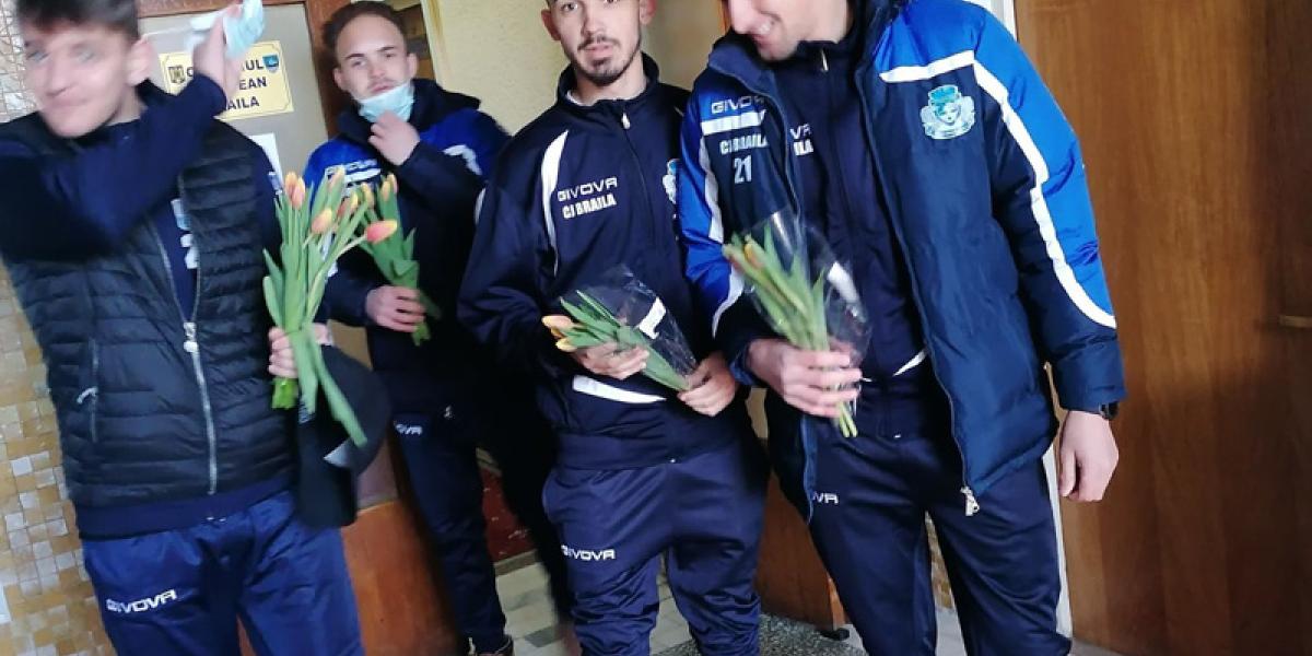 Jucătorii formației brăilene de fotbal Dacia Unirea au oferit lalele cu ocazia zilei de 8 Martie, iar cadourile oferite de aceștia au fost primite cu mare plăcere de doamnele și domnișoarele întâlnite de aceștia.