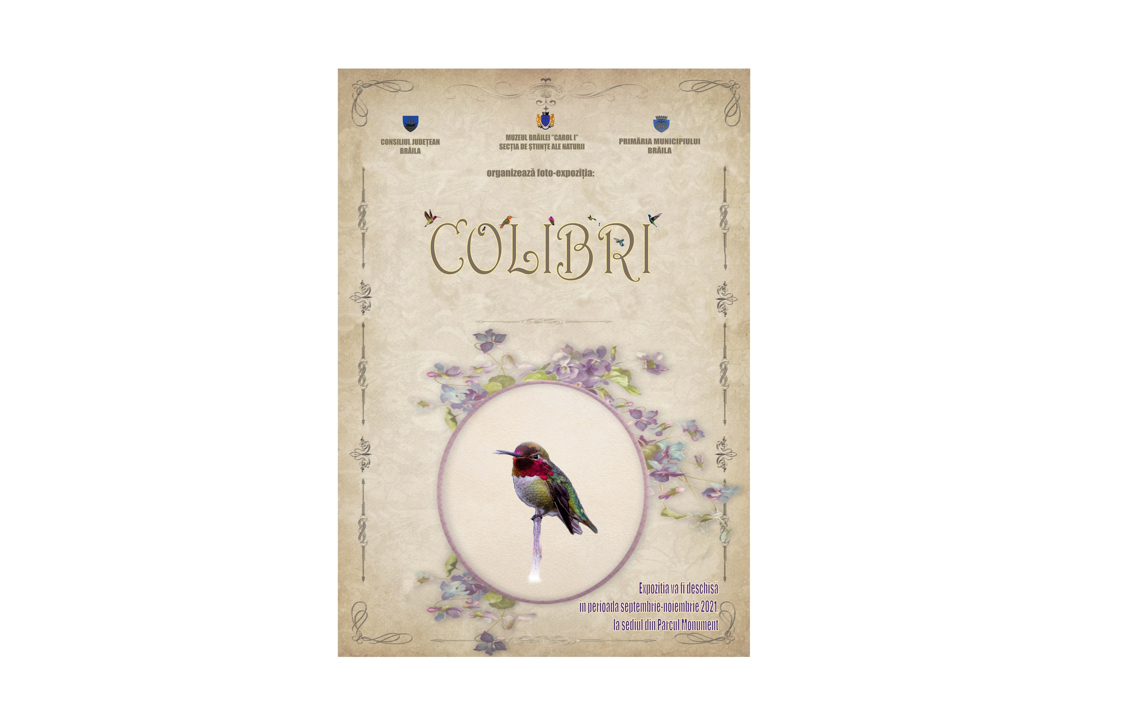 Iubitorii de natură şi nu numai sunt aşteptaţi, zilele acestea, la o interesantă incursiune în viaţa "păsărilor-muscă" - minunatele păsări colibri. Foto-expoziţia "Colibri", deschisă publicului brăilean la Secţia Ştiinţele Naturii a Muzeului Brăilei "Carol I" (Parcul Monument), poate fi vizitată până în luna noiembrie. Ea este alcătuită din 50 de planşe în care sunt prezentate cele mai frumoase specii ale acestei mari familii - Trochilidae, atent alese, dar şi informaţii interesante cu privire la pasărea colibri.