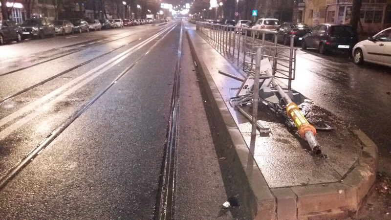 Brăileanul a condus autovehiculul pe Bulevardul Dorobanţilor, iar la intersecţia cu strada Apollo a pierdut controlul asupra direcţiei de mers, lovind refugiul pietonal al staţiei mijloacelor de transport în comun.