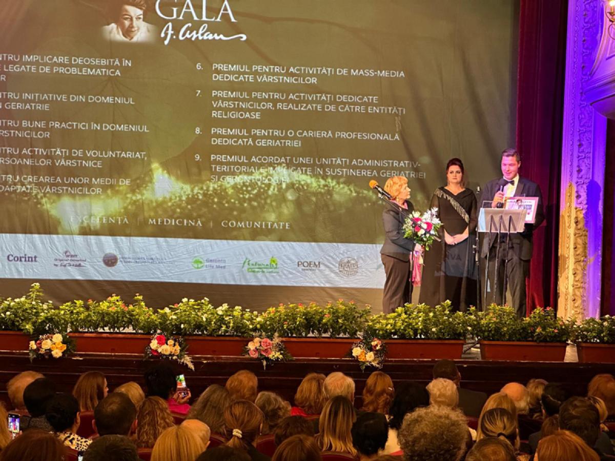 Premiul pentru bune practici în îngrijirea vârstnicilor a revenit dr. Nina Maria Diaconescu, fondatoarea Centrului GERONTO LIFE MED din București și fostă elevă a Anei Aslan, distinsă de Excelența Sa Enkeleda Baduni Mërkuri, Ambasadorul Republicii Albania în România. ”Este o onoare care ne încurajează să mergem mai departe — cu aceeași grijă, profesionalism și respect pentru fiecare senior aflat în îngrijirea noastră”, a spus dr. Diaconescu.
