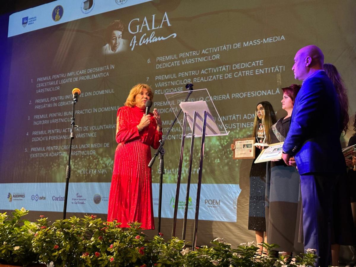 Premiul pentru activități media dedicate seniorilor a fost oferit jurnalistei Andreea Cigolea, realizatoarea emisiunii ”Sfat de sănătate” (Antena 3 CNN).