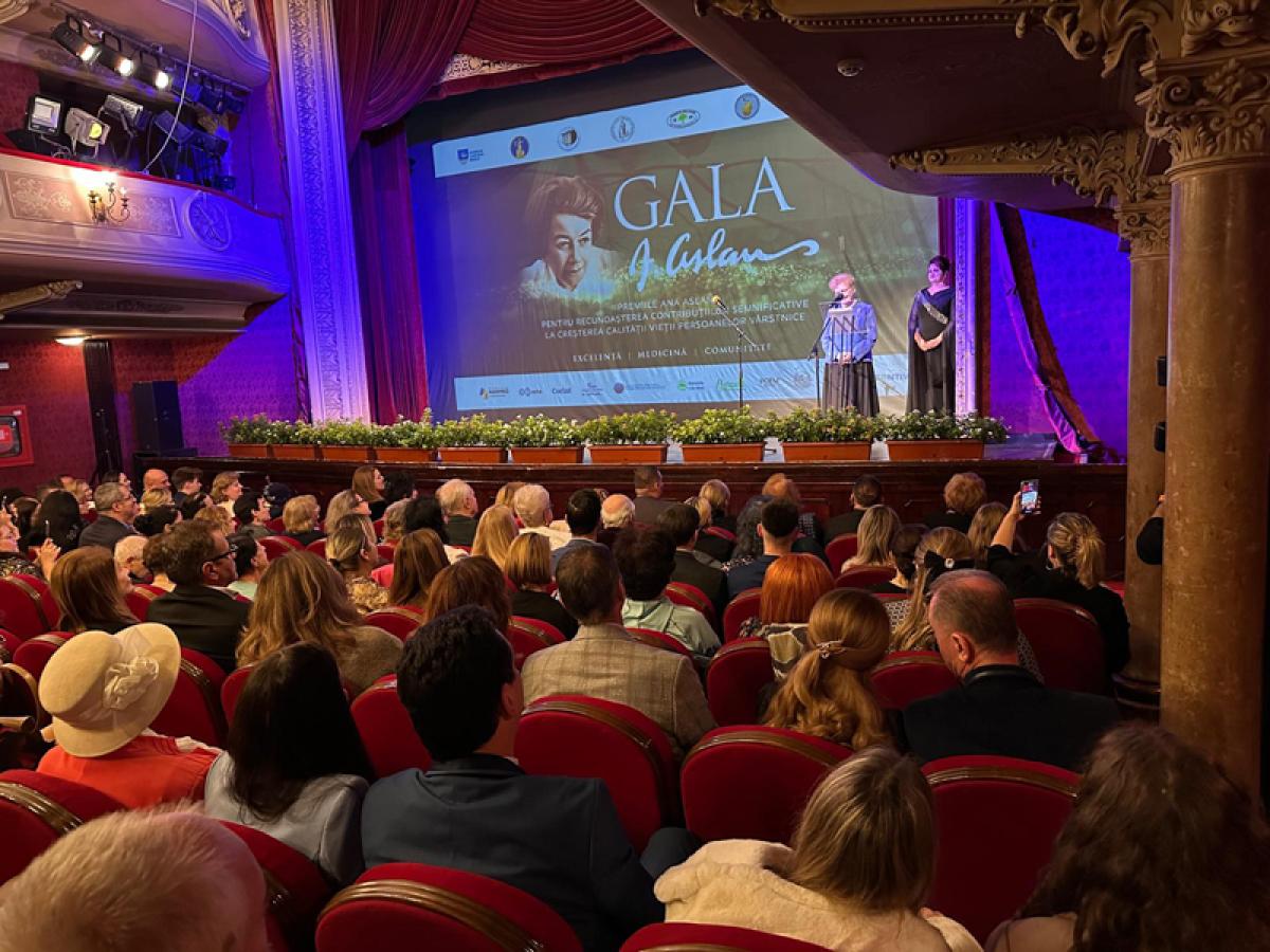 Seara a culminat cu Gala ”Ana Aslan” 2025, desfășurată la Teatrul Maria Filotti, un eveniment dedicat excelenței în geriatrie și gerontologie, dar și moștenirii academice a savantei care a revoluționat modul în care lumea înțelege procesul de îmbătrânire.