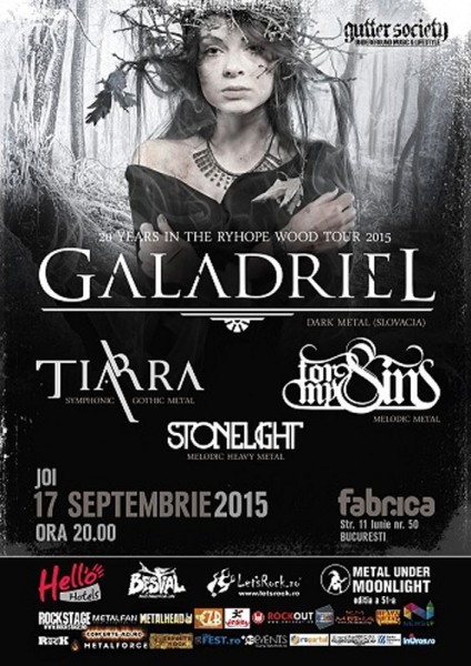 Grupul Galadriel din Slovacia a pregătit un show special pentru concertul ce va avea loc mâine seară, în capitală. Trupa de dark metal va urca pe scena din Club Fabrica (str. 11 Iunie, nr. 50, Sector 4 Bucureşti), alături de Tiarra, StoneLight şi For My Sins, însă trebuie punctat că fiecare dintre artişti va veni în faţa publicului cu ceva aparte. Galadriel au lansat de curând noul EP - "Lost In The Ryhope Wood" -, material pe care îl vor prezenta şi live, în premieră pe 17 septembrie, în România. De asemenea, potrivit organizatorilor, Tiarra va urca pe scenă împreună cu Alex Pantea (voce - membru fondator al formaţiei), show-ul de joi fiind unul dintre ultimele sale concerte alături de trupă. StoneLight susţine ultimul concert alături de Alex Mezei şi totodată, primul alături de noul chitarist, care va fi prezentat oficial cu această ocazie. Iar grupul For My Sins va prezinta live primul album, precum şi o piesă în premieră. Cu alte cuvinte, va fi o seară specială pentru amatorii genului metal din România. Accesul publicului se va face de la ora 20.00, iar preţul biletului este 20 lei. Acestea se găsesc de vânzare în seara concertului, la intrarea în club. For My Sins va concerta în intervalul 20.30 - 21.05, StoneLight (21.20 - 21.55), Tiarra (22.10 - 22.55) şi Galadriel (23.10 - 00.10).