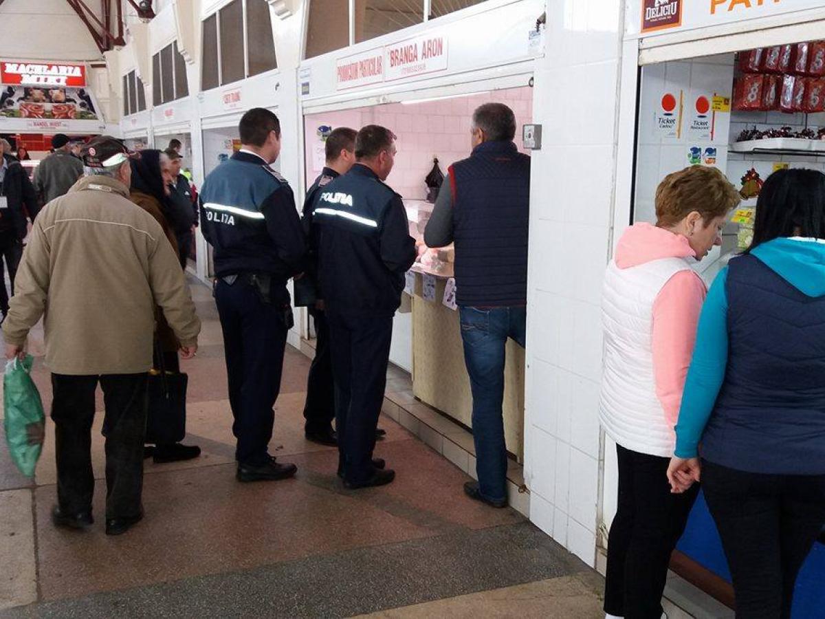 * astăzi, comercianții din Piața Mare, în special cei care vând carne, au fost luați la întrebări * acțiunea de control a început în jurul orei 11.00 și este încă în derulare