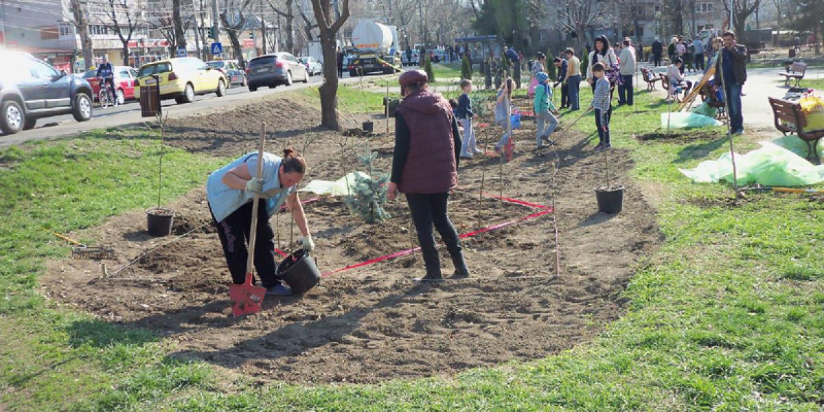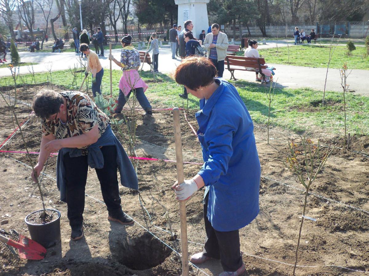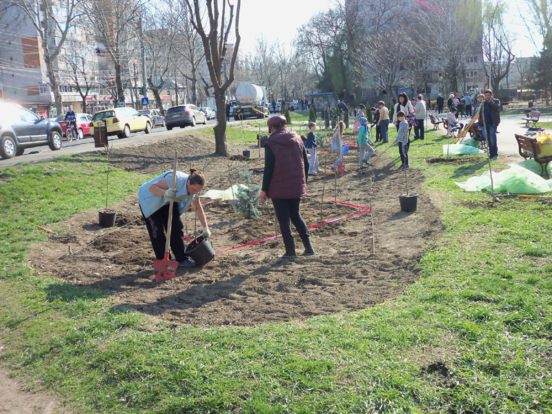 • este constatarea la care a ajuns primarul Marian Dragomir, încântat de modul în care s-a desfăşurat campania de plantare de pomi, vineri, în parcul de lângă statuia Caporalului Muşat • potrivit edilului-şef, s-au plantat 28 de cireşi japonezi şi 88 de trandafiri cu port înalt, flori şi gazon • municipalitatea va continua plantările în oraş cu angajaţii Seroplant, însă va mai face şi astfel de acţiuni publice