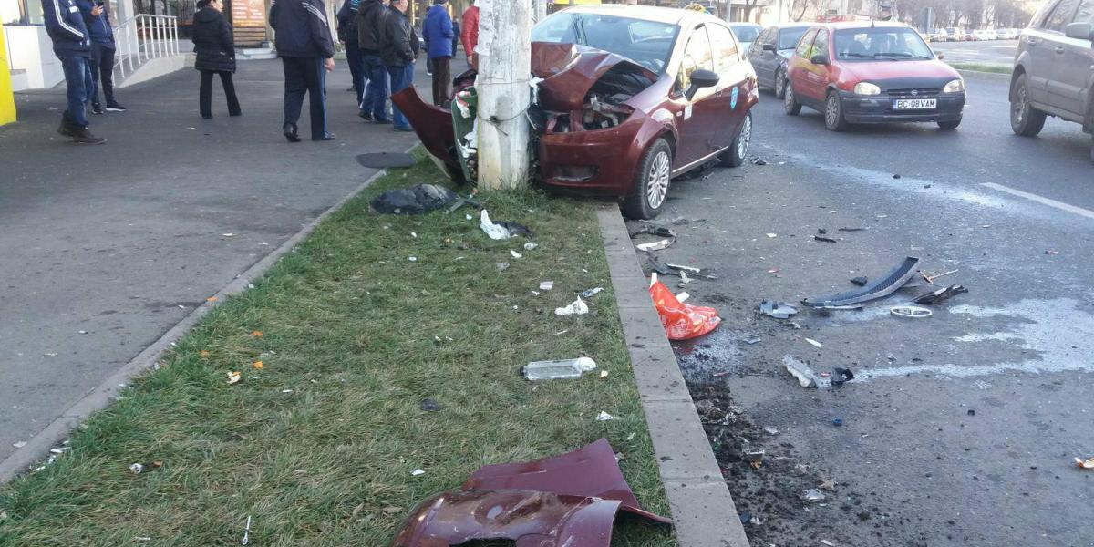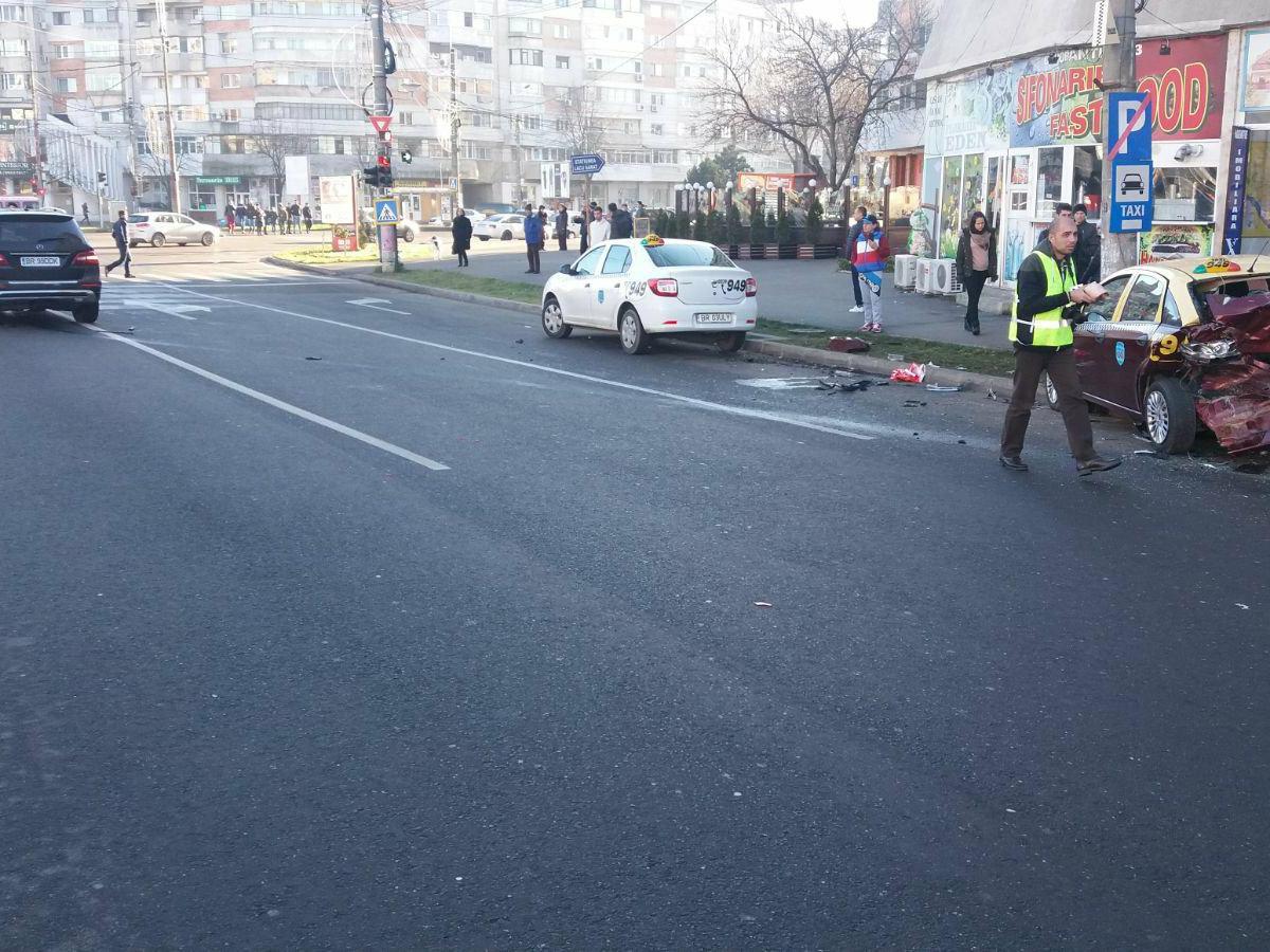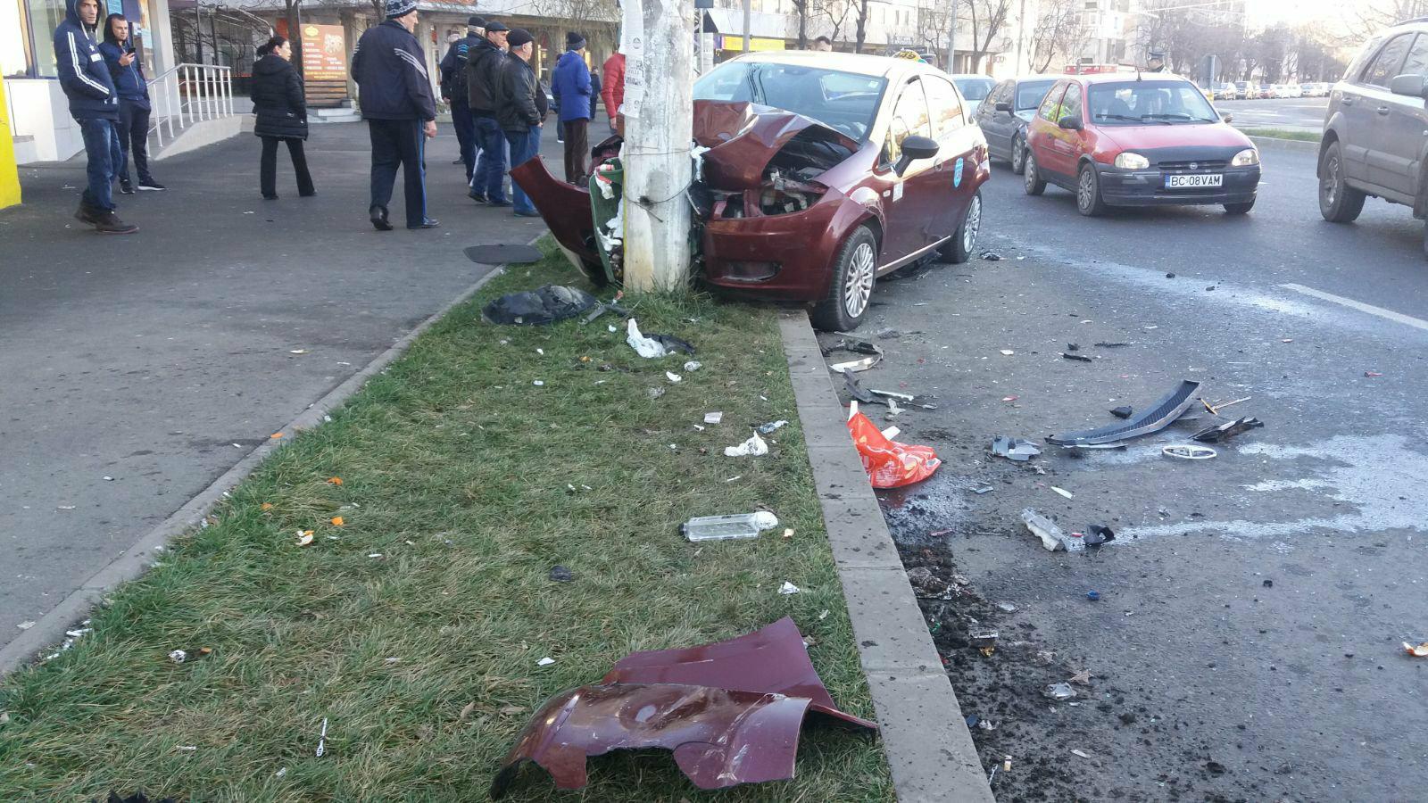 * un tânăr băut a intrat cu mașina într-un taxi, acesta din urmă fiind proiectat într-un stâlp * pasagerii din taxi au ajuns la spital