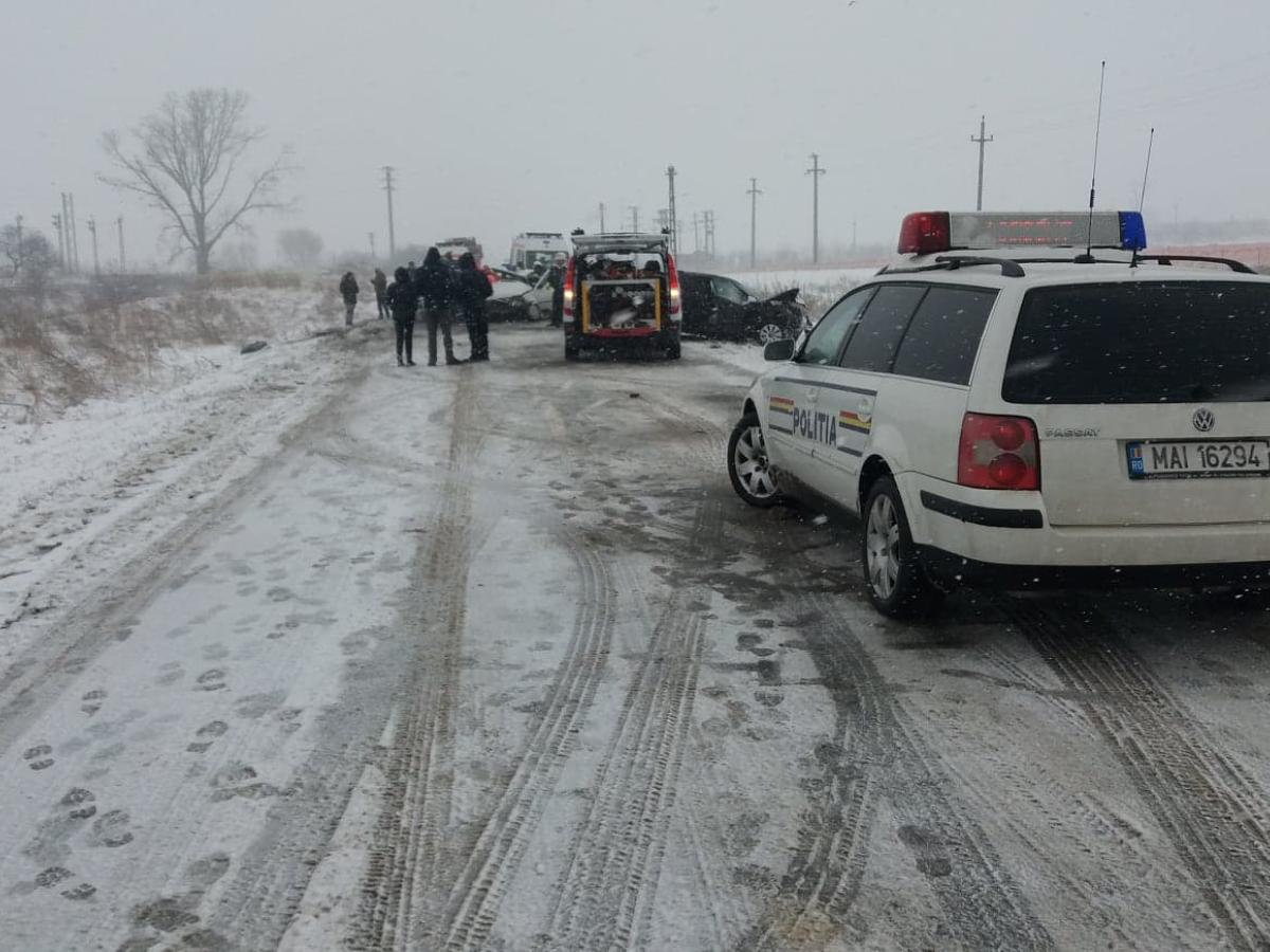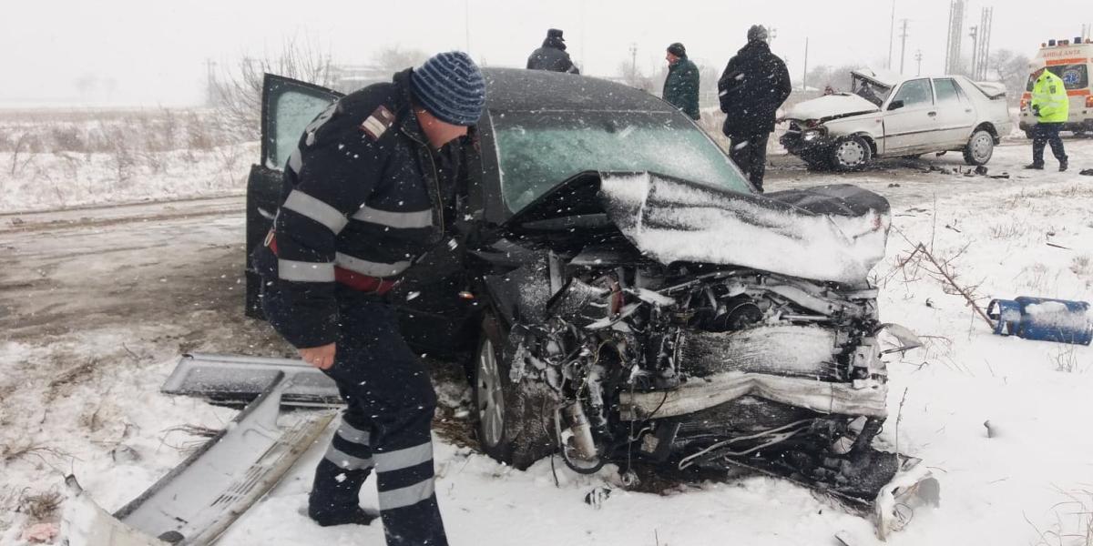 Accidentul s-a produs pe fondul vitezei excesive, în condiții de carosabil parțial acoperit cu zăpadă. Echipajele de Poliție urmează să stabilească din vina cui s-a întâmplat totul.