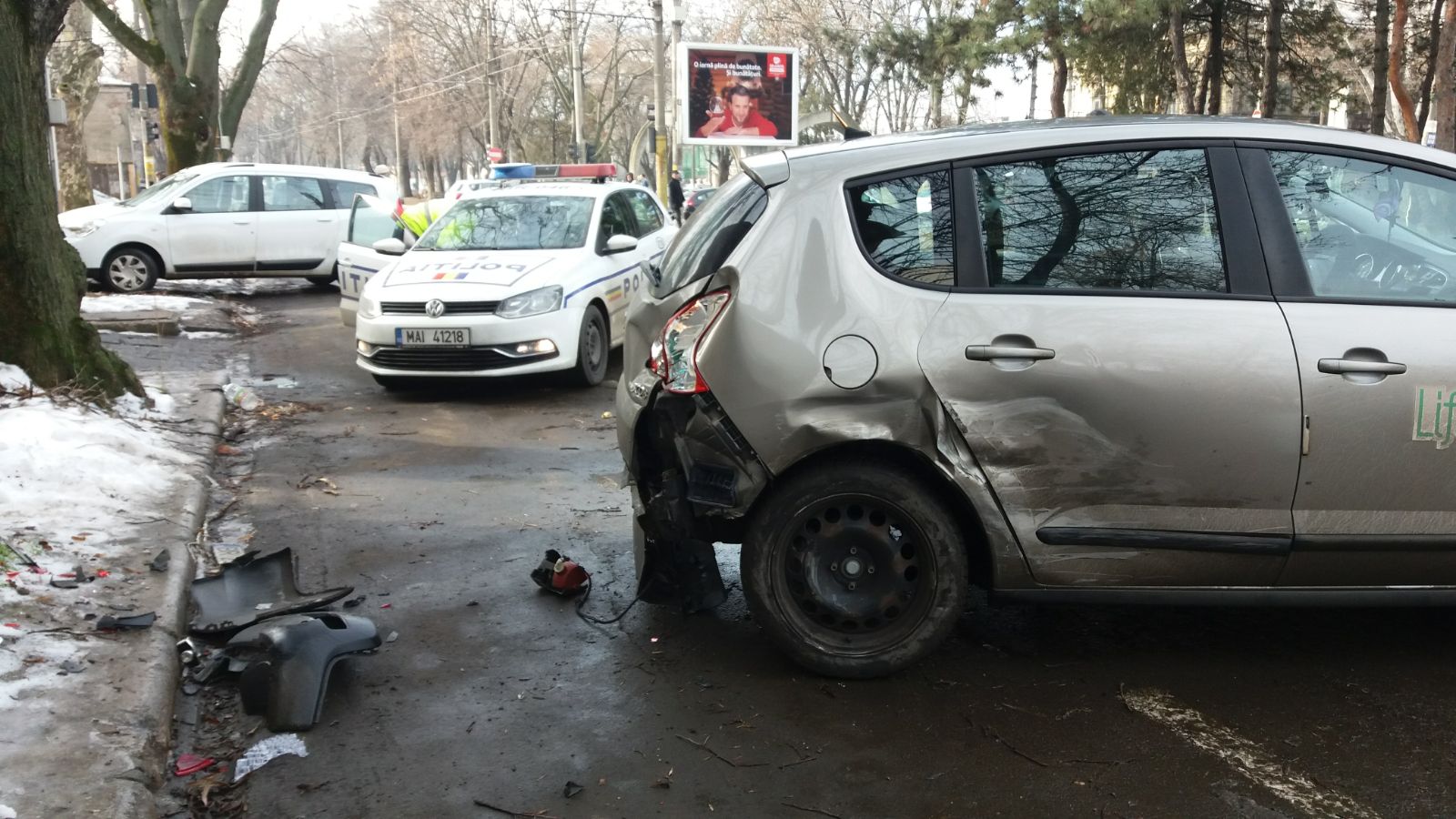 Acesta a intrat în coliziune cu un autoturism Peugeot, care circula pe Bulevardul Independenței. În urma impactului a rezultat rănirea unei pasagere din autoturismul lovit, care a fost preluată de ambulanță. Polițiștii au efectuat cercetarea la fața locului și i-au testat pe conducătorii auto cu aparatul etilotest, rezultatele fiind negative în ambele cazuri. S-a întocmit dosar penal pentru vătămare corporală din culpă.