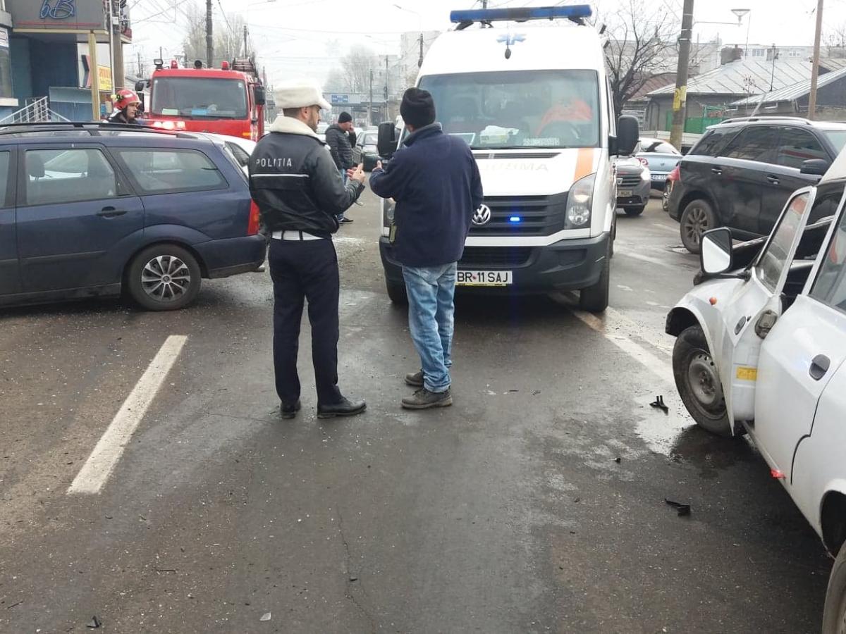 * din primele date, șoferul unei Dacia Papuc venea pe Râmnicu Sărat dinspre Centură și a virat stânga pentru a intra în curtea unei societăți * nu s-a asugurat și a intrat în coliziune cu un Ford care venea pe contrasens * alte trei mașini au fost lovite, acestea fiind parcate