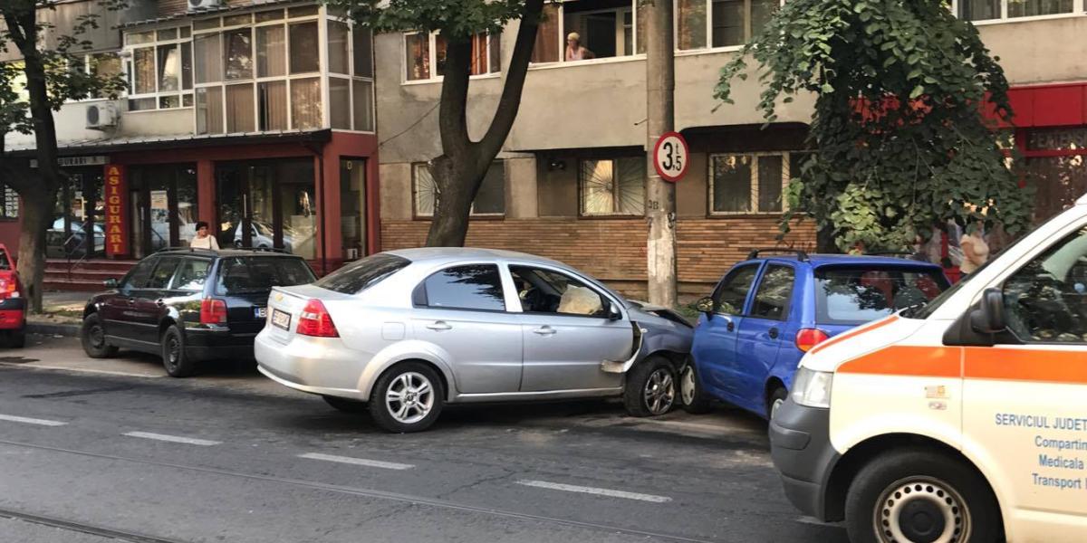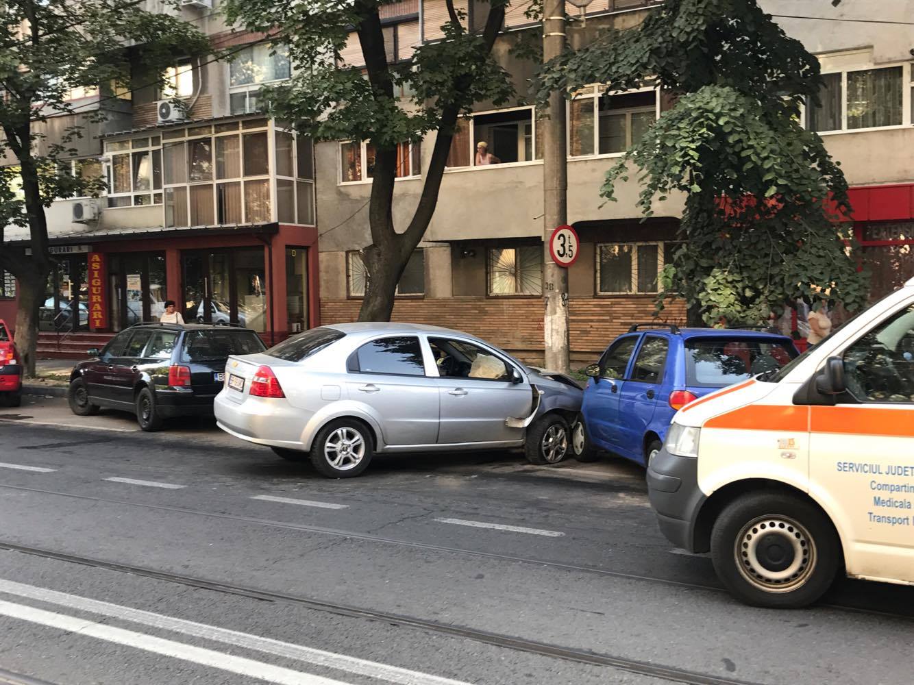 Un șofer a intrat cu mașina în refugiul de tramvai de la intersecția bulevardului Dorobanților cu General Eremia Grigorescu (fosta Gării), în această dimineață. După impact, mașina a ricoșat într-un alt autoturism, marca Matiz, condus de o femeie, care se deplasa pe sensul opus de mers.