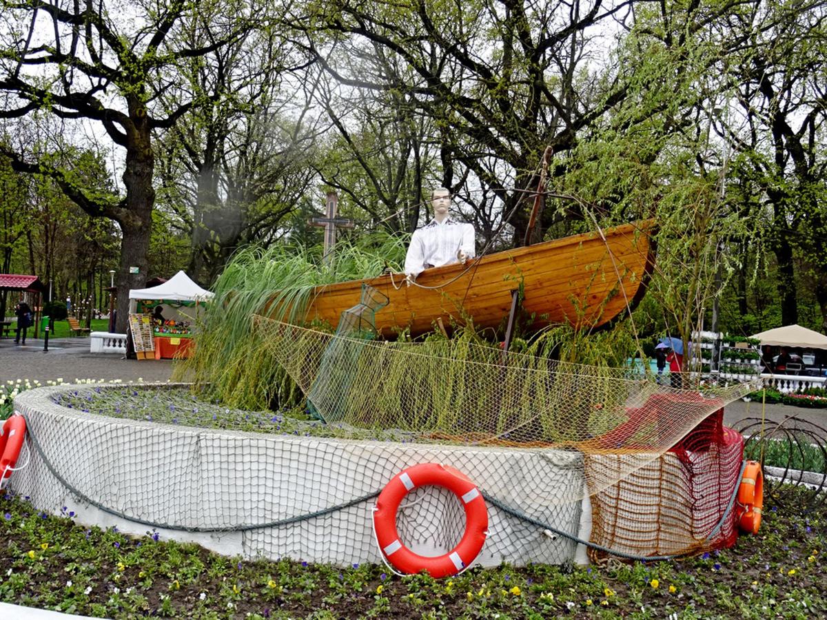 Pentru a da un plus de originalitate evenimentului, Primăria a montat, în centrul rondoului, o barcă pescărească dotată cu o năpatcă, plase şi alte ustensile specifice acestei îndeletniciri reprezentative pentru zona noastră.