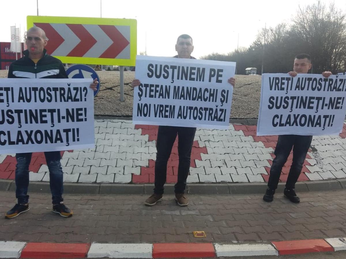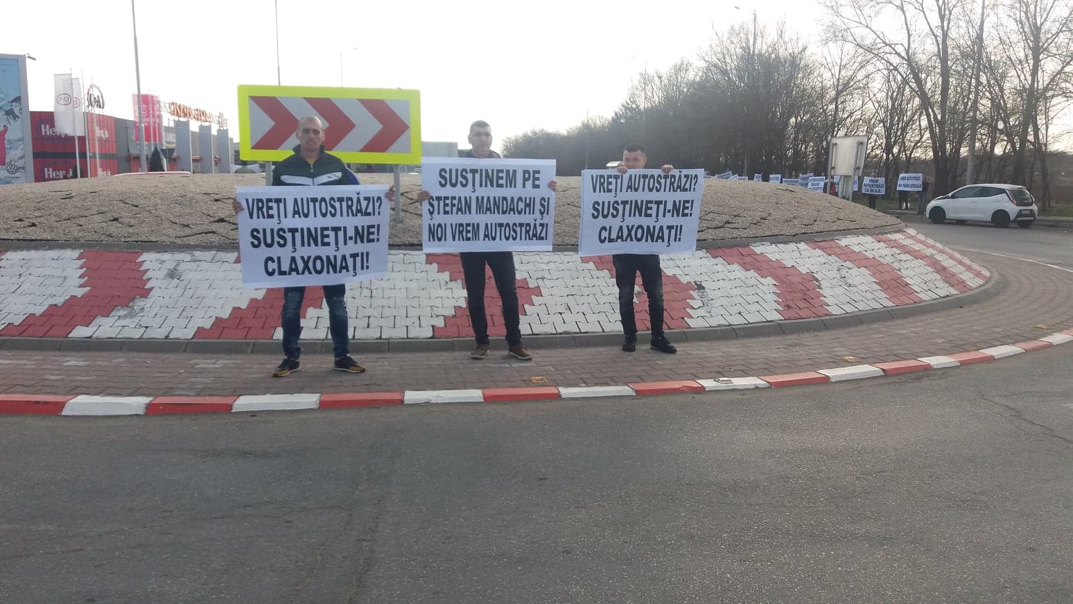 Un alt loc în care brăilenii și-au exprimat dorința ca în România să se construiască autostrăzi a fost sensul giratoriu de la Carrefour. În jurul sensului, dar și de-a lungul Drumului European 584, s-a constituit un lanț uman. În jur de 50 de oameni au afișat pancarte cu mesaje precum „Nu facem politică. Suntem români care vor autostrăzi pentru România”, „Vreți autostrăzi? Susțineți-ne! Claxonați-ne!”, „Susținem pe Ștefan Mandachi! Și noi vrem autostrăzi!”.