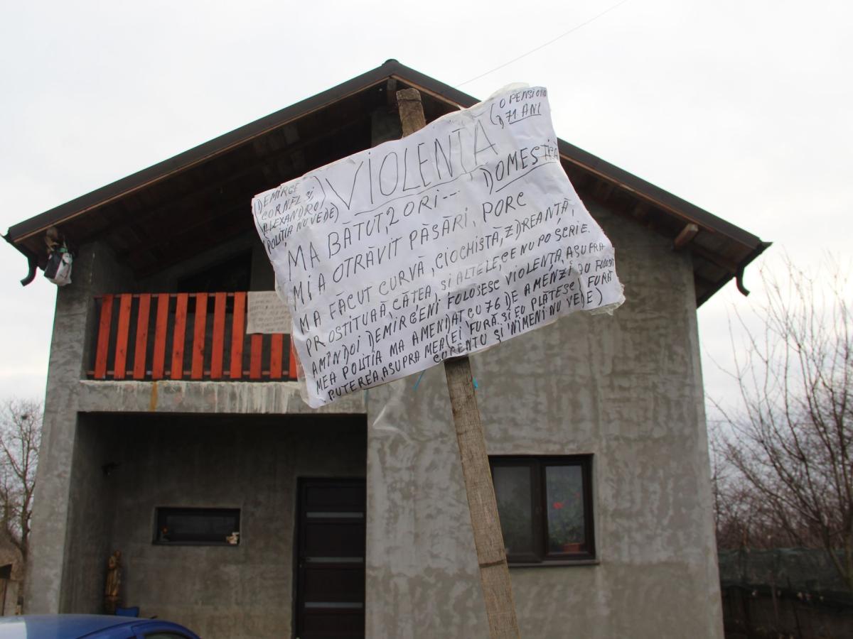 Îmi vin două-trei facturi pe lună și mă somează că dacă nu plătesc îmi taie curentul, păi se poate așa ceva? David Maria mă numesc, am 71 de ani, am făcut sesizare la comisarul Munteanu, la comisarul Codruț, adică ce vrei, păi eu iau mâncare de la obor, îmi cresc păsări aici, le dau mâncare, iar el mi le omoară. Am atârnat curcile și păsările care le-a omorât în poartă, aici, să le vadă lumea, a venit cineva să întrebe? Nu... nimic.