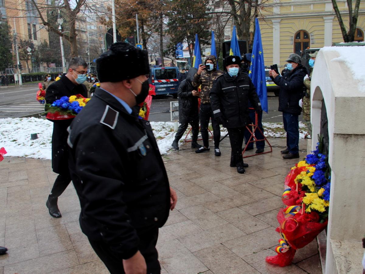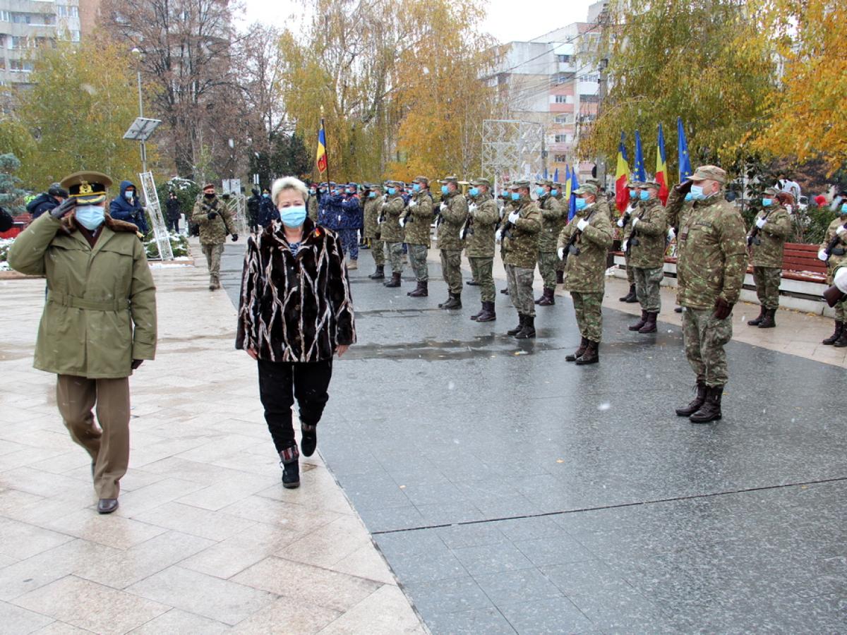 Ceremonia a început la ora 12.00, cu o slujbă religioasă și trecerea în revistă a Gărzii de Onoare. A urmat un scurt discurs al subprefectului Simona Drăghincescu, apoi s-au depus coroane de flori la monumentul Ecaterinei Teodoroiu. Totul a durat circa 20 de minute.