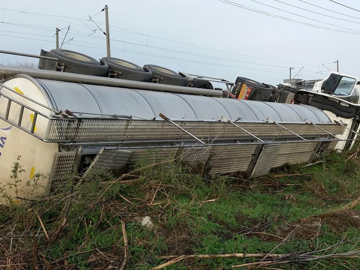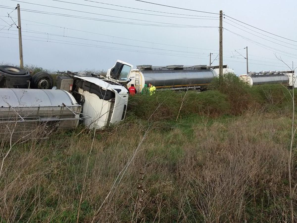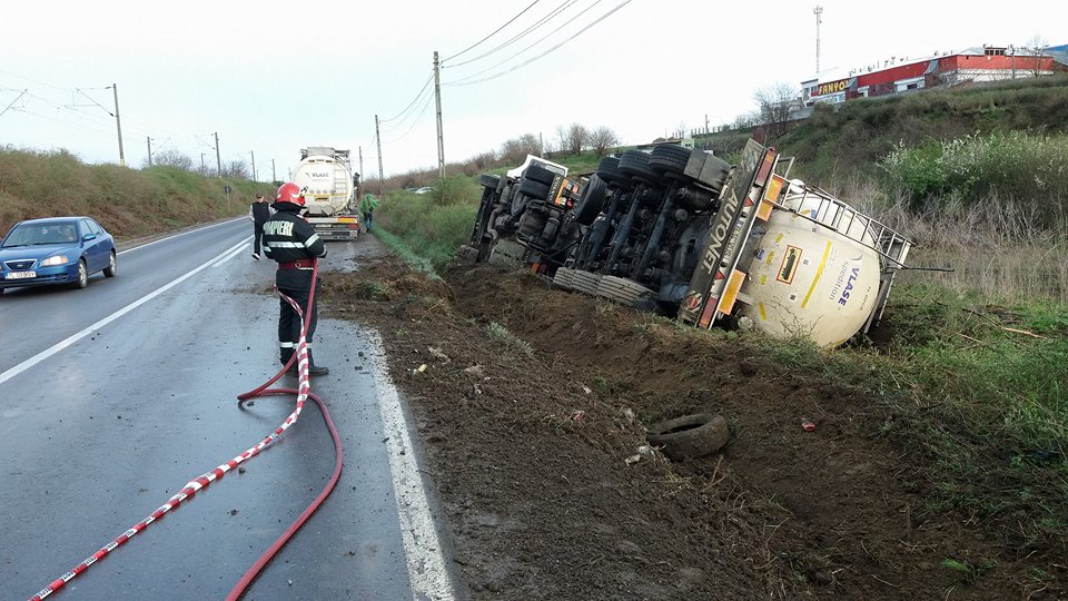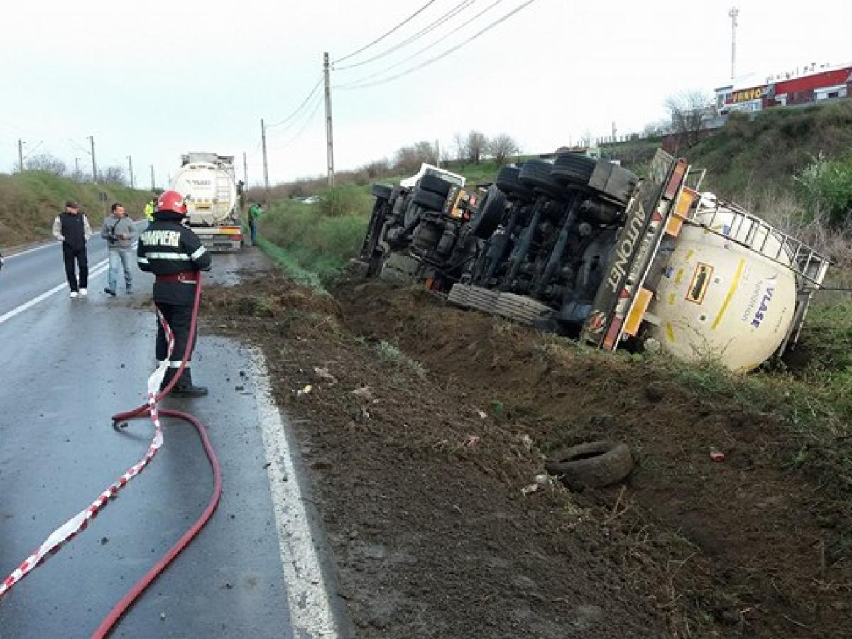 Cisternă plină cu ulei industrial răsturnată la Baldovinești