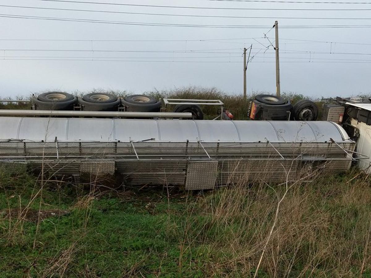 În urmă cu puțin timp, la ieșirea din satul Baldovinești spre municipiul Brăila, o cisternă încărcată cu ulei industrial a ieșit de pe carosabil și s-a răsturnat. Autotrenul venea dinspre Galați și se îndrepta spre Austria. Șoferul a pierdut controlul volanului, a lovit acostamentul și, din cauza carosabilului umed, a intrat în șanțul de pe marginea șoselei.