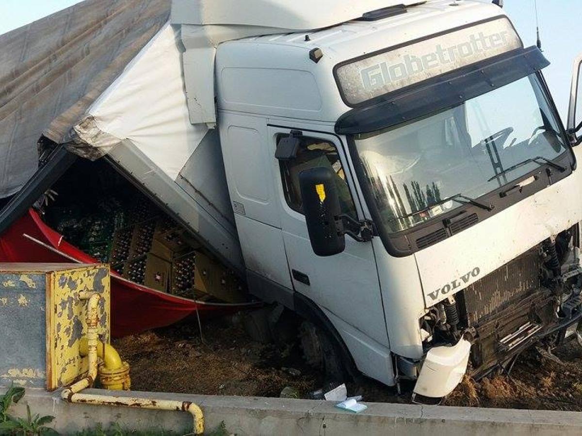 În urmă cu puțin timp, șoferul unui TIR care se deplasa de la Bucureşti către Brăila, pe fondul neatenției în conducere, a pierdut controlul volanului și s-a izbit în plin de parapeți. Incidentul a avut loc în dreptul firmei Chimagri, pe pe DN 2 B. Din fericire, șoferul a scăpat nevătămat, dar, din nefericire pentru iubitorii de bere, sute de sticle marca TUBORG s-au făcut praf.
