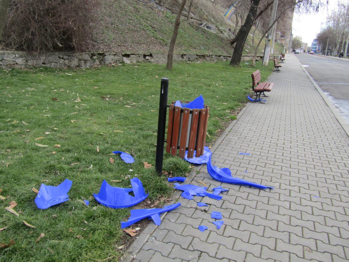 Băncile vandalizate completează și ele nefericit aceste nereguli. Nevăzute, inclusiv de către agenții care stau, bine mersi, la adăpost într-o cabină ferită de orice intemperie. Că doar “paza veghează, dar nu garantează” fiindcă, din câte se pare, din cușcă nu se vede nici mizeria și brazii de la baza scărilor, către cabinetele medicale. Ca să pună capac la toate, spațiile verzi și trotuarele sunt pline de excrementele câinilor de rasă scoși la aer de câtre cuconetul și “telectualii” cu pretenții de orășeni, dar de nimeni amendați pentru că nu adună mizeria lăsată în urmă de animalele lor de companie.
