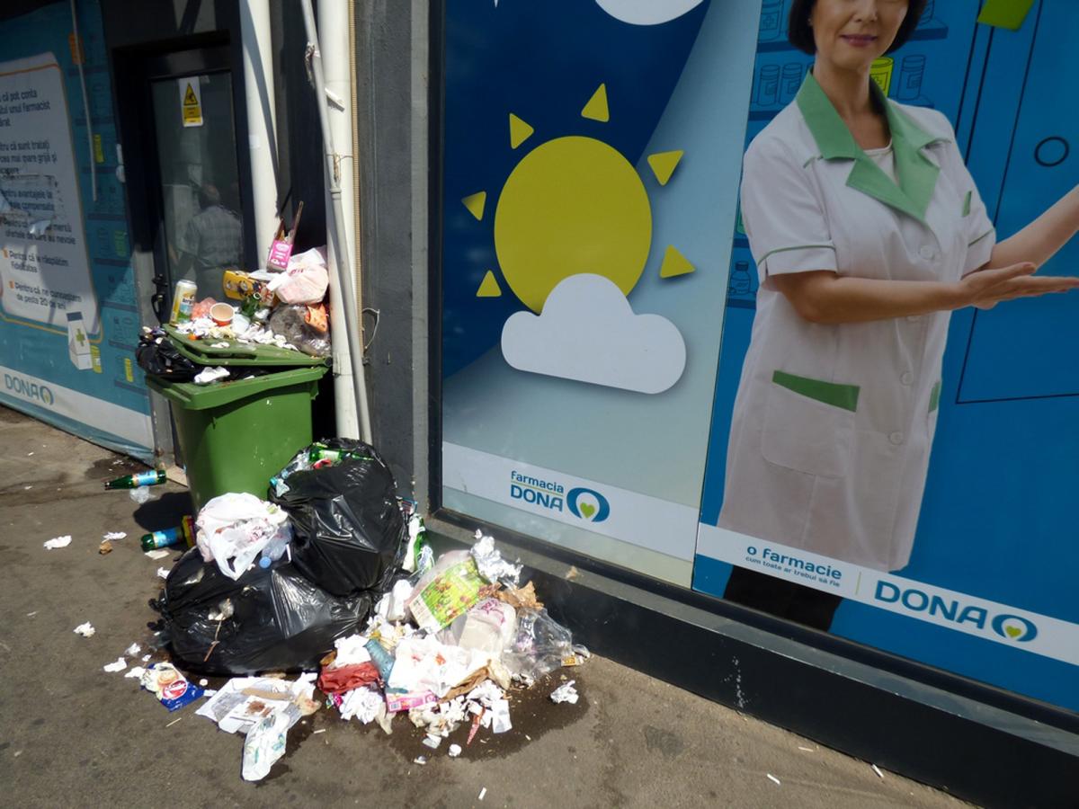 Se întâmplă frecvent, în zona Pieţei Concordia, ca tomberoanele să stea negolite mai multe zile la rând, iar lângă farmacia Dona, tot din zona pieţei respective, mizeria rezistă neridicată chiar şi o săptămână. Asta după ce, în sfârşit, şaormeria din apropiere a renunţat la prostul obicei de a-şi mai arunca resturile alimentare şi ambalajele “la proastă vedere”.