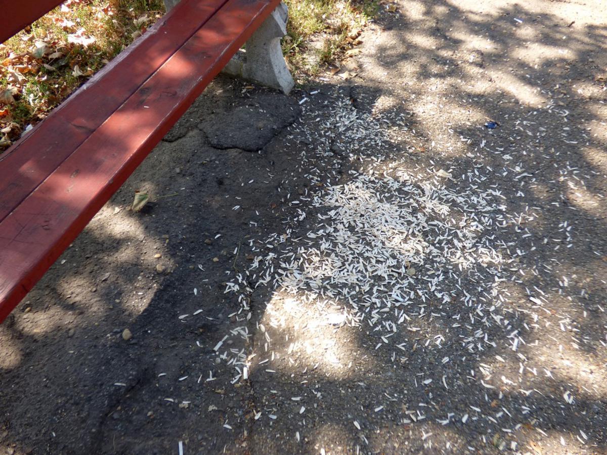 În altă zonă a oraşului, uitată de ai noştri edili, mai exact pe bulevardul Independenţei – între Str. Mihai Eminescu şi Str. Carantinei -, la gunoaiele stradale strânse de salubrişti şi abandonate zile întregi, se adaugă şi cele ale riveranilor. Unii odihnindu-se pe băncile vandalizate, în apropierea grămezilor de asfalt răzuit şi a covoarelor din coji de seminţe.