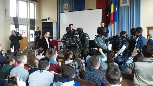 De această dată nu a fost însă vorba despre un furt real ci de un exerciţiu pus în scenă de oamenii legii, la ceas aniversar, astăzi fiind Ziua Poliţiei. A fost amenajată o locuinţă, iar doi falşi hoţi au intrat pe geam, au stat la taclalele, au băut ce au găsit prin casa şi apoi au furat telefoane, un laptop şi alte bunuri. S-au făcut nevăzuţi ulterior. Martori la comiterea furtului au fost peste 100 de copii, de la mai multe şcoli, cărora poliţiştii le-au cerut apoi ajutorul pentru a afla semnalmentele hoţilor. Copiii s-au dovedit a fi de mare ajutor în ancheta poliţiştilor.