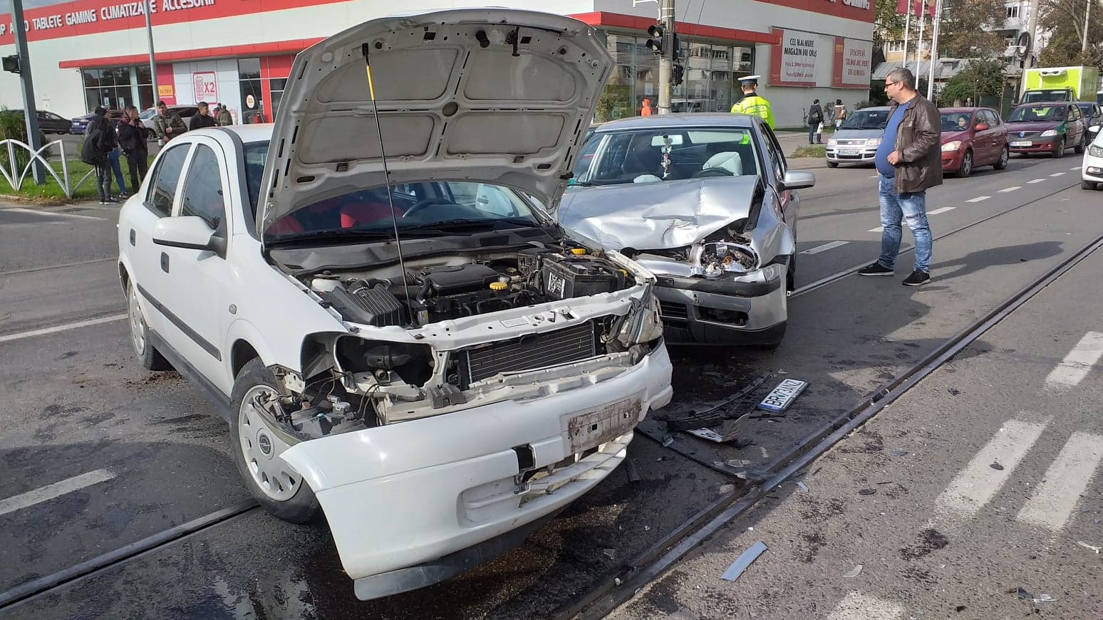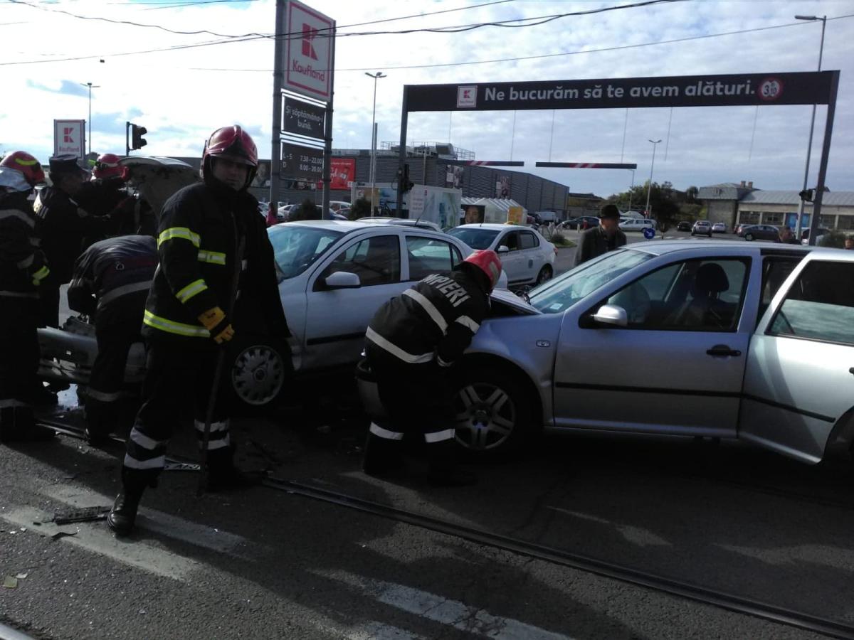 În zona supermarketului „Kaufland”, șoferița a intrat în coliziune cu un autoturism „Opel Astra”, condus de un bărbat de 45 de ani care ieșea din parcarea magazinului și nu a acordat prioritate, el virând spre stânga. A rezultat vătămarea corporală a femeii aflate la volan, dar și a unei pasagere de 32 de ani, ambele fiind transportate la spital pentru îngrijiri medicale.