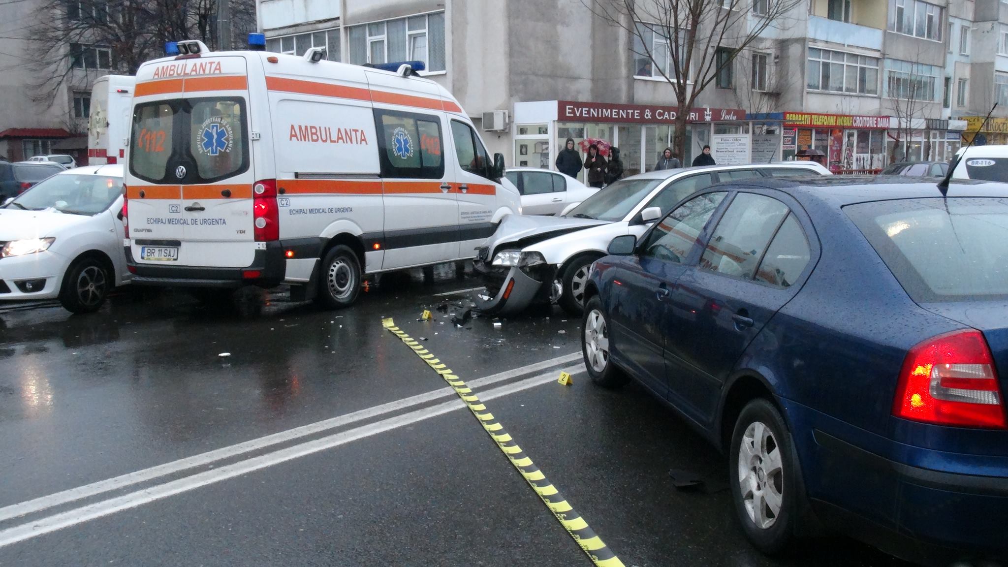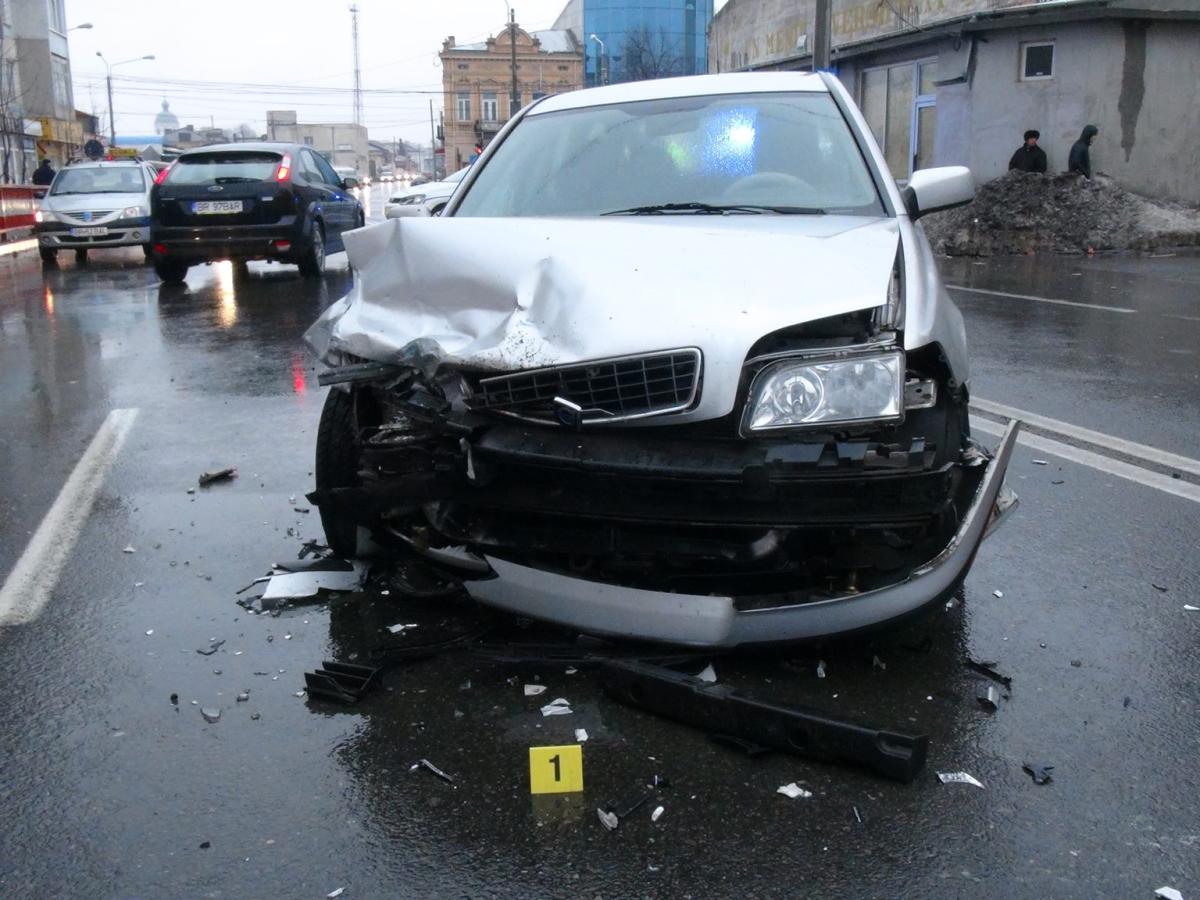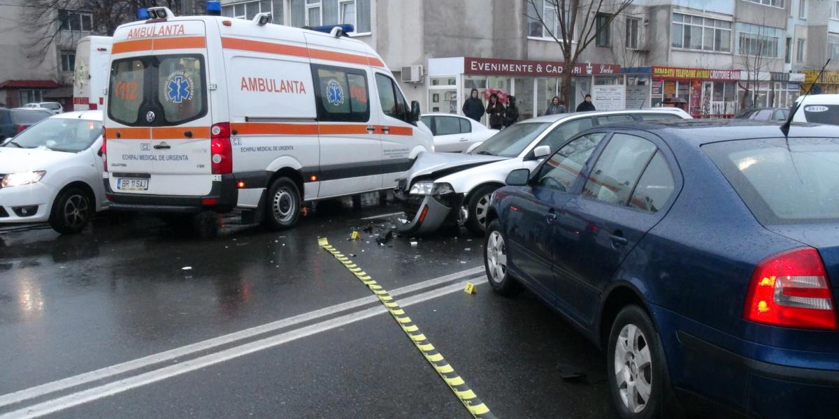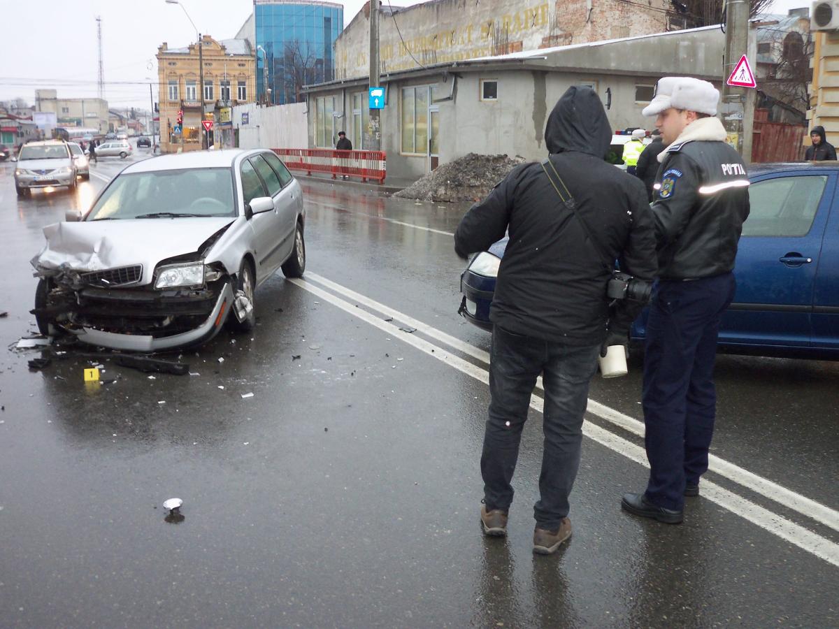Un șofer de 27 ani, din Brăila, care circula la volanul unui autoturism Skoda, pe Griviţa, de la Şcolilor către str. 1 Decembrie, a virat stânga pentru a intra în stația peco Rompetrol, fără a acorda prioritate unui autovehicul Volvo care venea din sens opus.