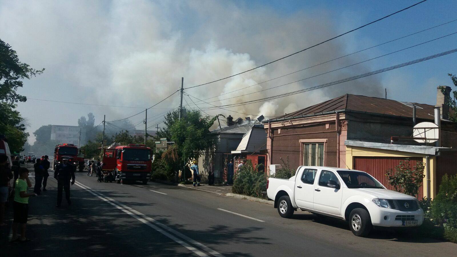 Cinci case de pe strada Theodor Aman, din zona Piața Săracă, au fost cuprinse de flăcări, în urmă cu puțin timp. Pompierii acționează cu șase autospeciale, pentru a lichida incendiul. Din fericire, nu există victime. Locuitorii din zonă cred că focul a izbucnit dintr-o curte a unui bărbat care efectua lucrări de tinichigerie.
