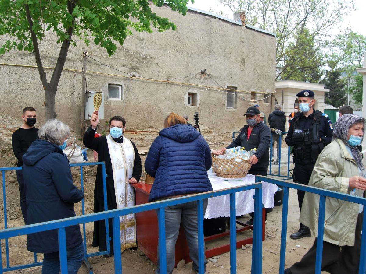 A fost, totodată, o sărbătoare „altfel” decât în anii precedenți: credincioșii nu au mai coborât la izvorul de sub Sfântul Altar, ca să ia apă sfințită direct de la fântâna veche de pe vremea lui Cuza și nu s-au mai îmbulzit cu miile, în curtea bisericii, implorând ajutorul Lui Dumnezeu. De data aceasta, au făcut-o în liniște, fie în sfântul lăcaș, fie în curte, unde erau împărțite cele 20.000 de sticle de 1 litru pline cu agheazmă. La prânz, abia dacă mai erau câteva zeci de oameni care așteptau, timizi, la coadă.