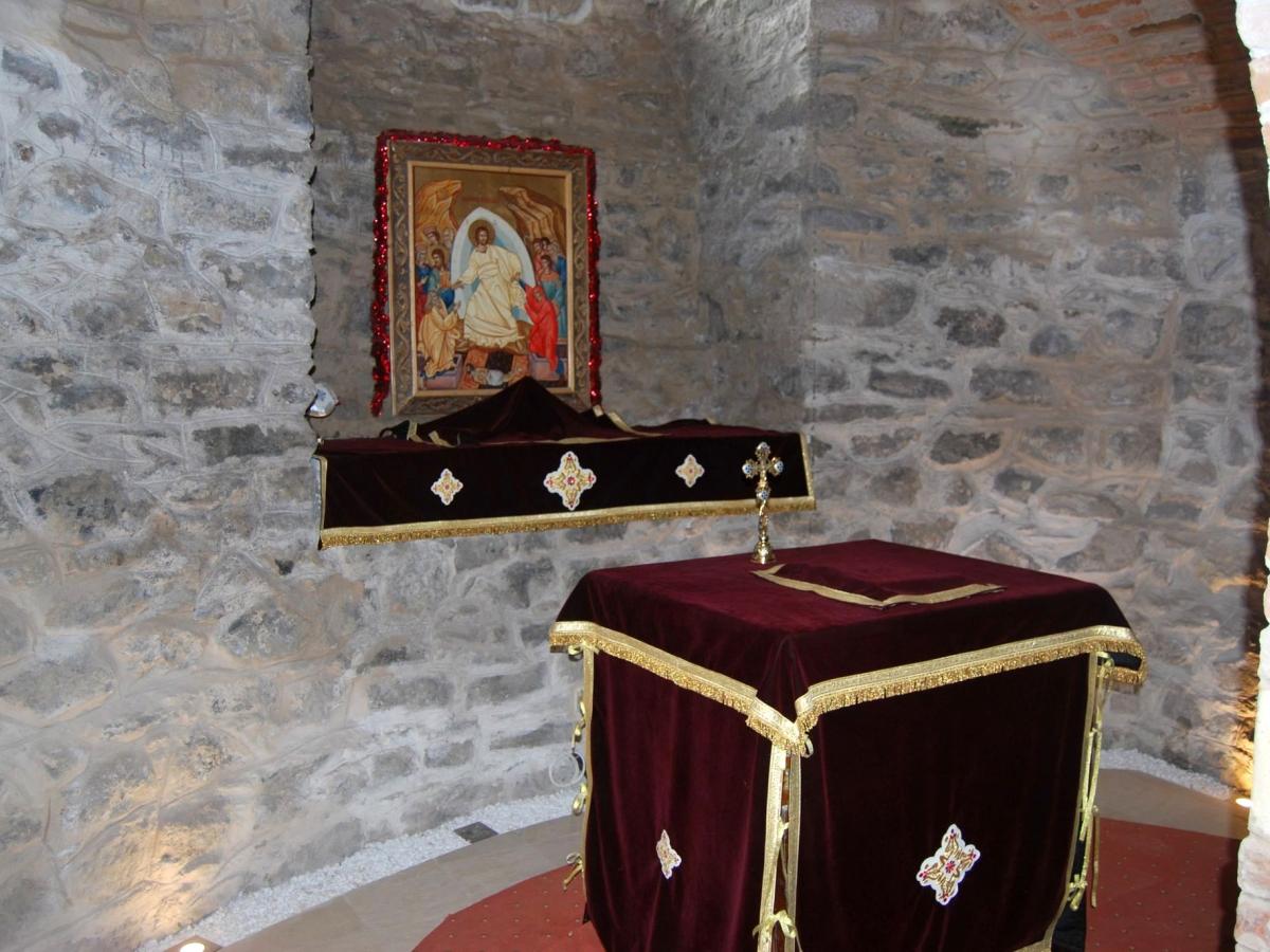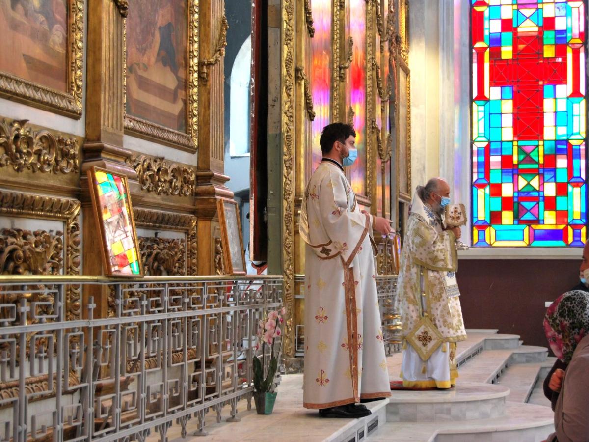 Imnul Învierii Domnului, „Hristos a înviat din morți/ Cu moartea pe moarte călcând” a răsunat în Biserica „Buna Vestire” pe tot parcusul slujbei. ÎPS Casian i-a îndemnat pe credincioși să păstreze distanța impusă de pandemie, iar la un moment dat a șters, cu un prosop imaculat - în semn de respect și pioșenie - icoanele și ușile împărătești de la Catepeteasma îmbrăcată în aur, proaspăt restaurată.