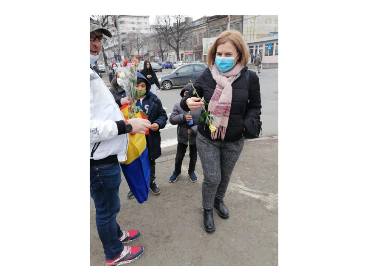 După cum se poate observa în fotografiile transmise de către AUR Brăila, unul dintre membrii de partid care au împărțit flori doamnelor și domnișoarelor pe stradă, din păcate, nu poartă masca de protecție în mod corespunzător. La fel și o parte a celor care se aflau în acel moment pe stradă.