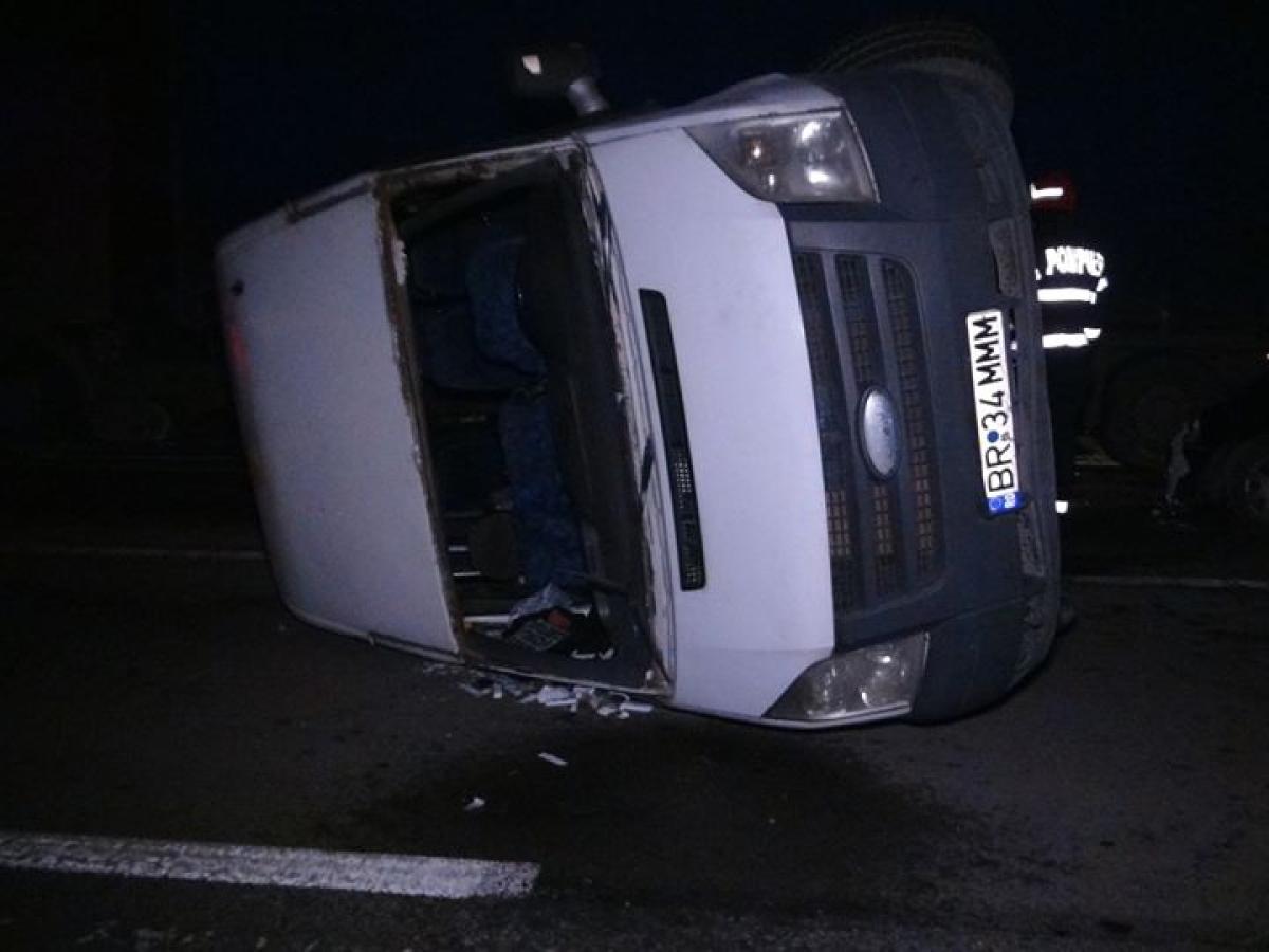 Știre în curs de actualizare: În urmă cu puțin timp, la ieșire din municipiul Brăila, în zona Combinatului, a avut loc un grav accident de circulație. Un microbuz de transport persoane, din fericire fără pasageri, și un autoturism s-au ciocnit violent, în urma impactului microbuzul fiind răsturnat.
