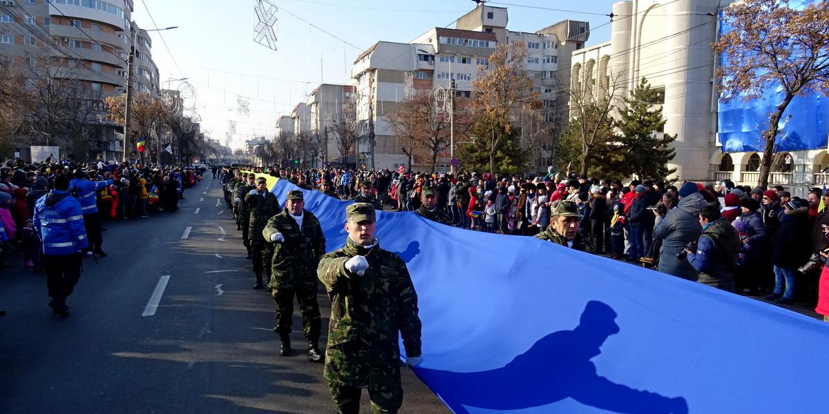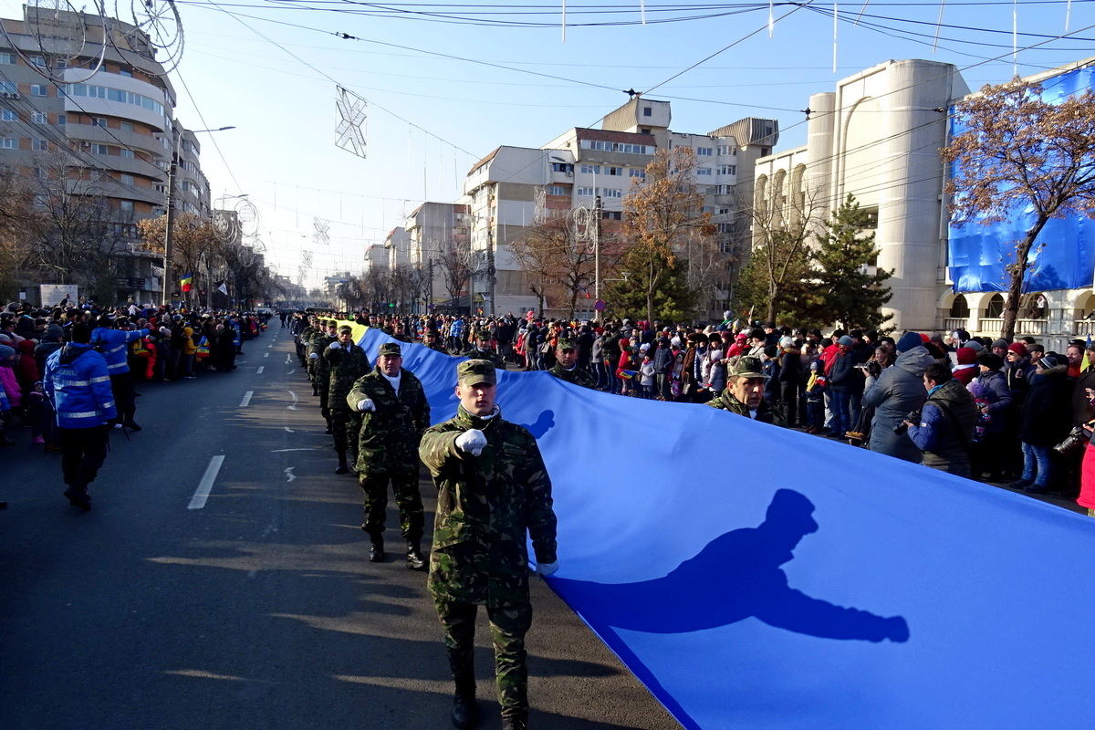 Defilarea de anul acesta a fost diferită față de cea din anii trecuți prin faptul că militari din toate structurile Garnizoanei Brăila au purtat un drapel lung de circa 100 de metri, fiind aplaudați de sutele de privitori aflați de-a lungul Căii Călărașilor. După defilare, oficialitățile au depus coroane de flori la monumentul Ecaterinei Teodoroiu, proaspăt reabilitat. Alături de primarul Marian Dragomir și cei doi viceprimari ai Brăilei s-a aflat și artistul Grigore Leșe, invitatul de onoare de anul acesta.