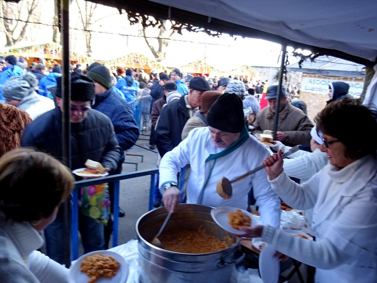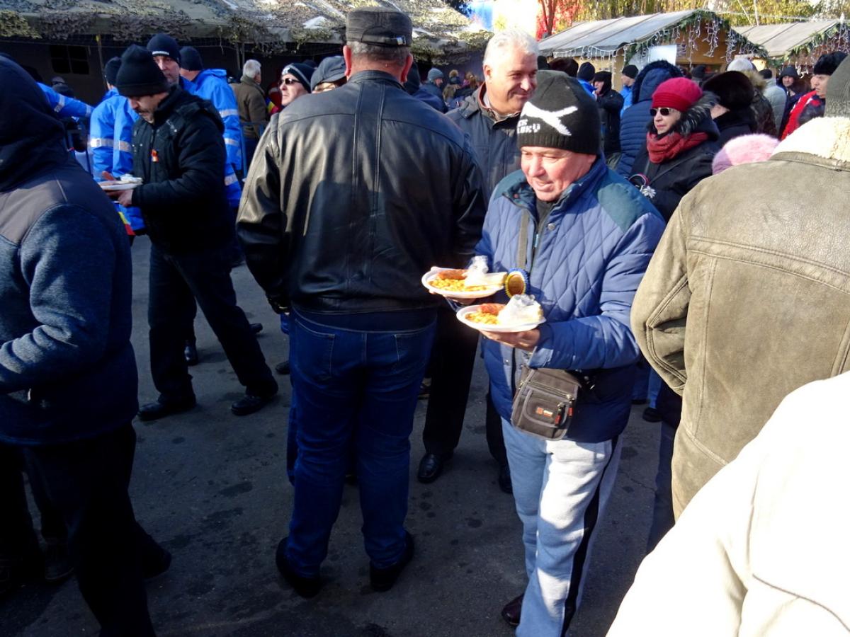 Cele circa 3.000 de porții de fasole cu cârnați pregătite de Primărie s-au epuizat rapid, acestea împărțindu-se într-o manieră destul de civilizată, datorită felului cum a fost gestionată situația de către jandarmi.