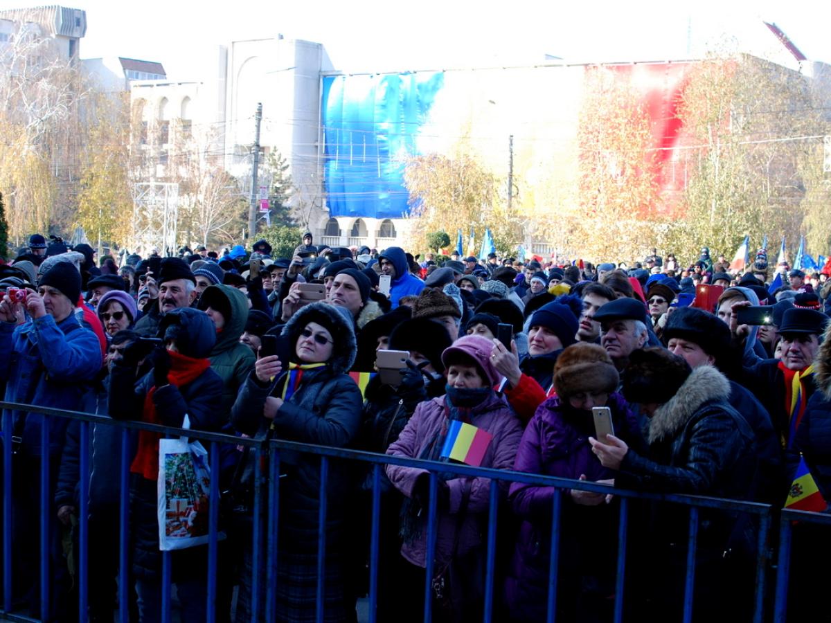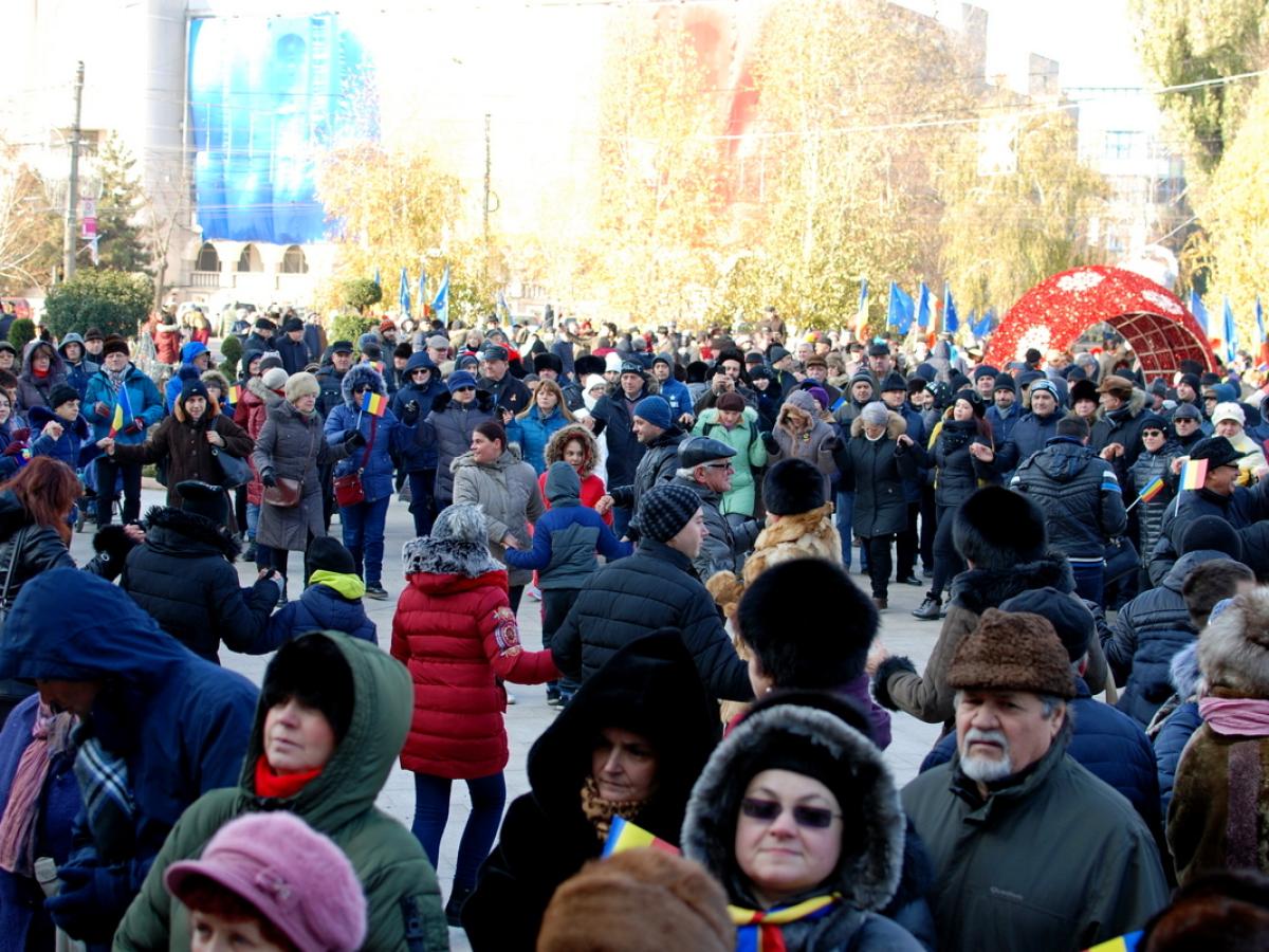 * după ce au privit defilarea militarilor, oamenii nu au ținut cont de ger și au încins hore și sârbe pe platoul din Piața Independenței
