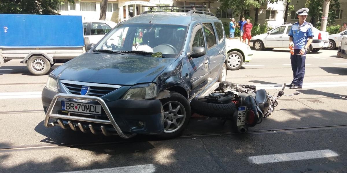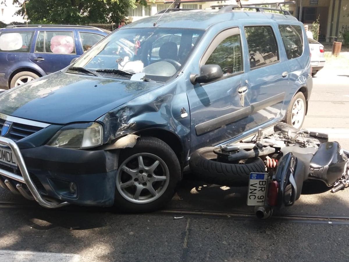 Un autoturism Dacia Logan, condus de o șoferiță, a lovit o motocicletă, pe Bulevardul Dorobanților, în apropiere de Liceul Cerna. Cei doi participanți la trafic veneau dinspre strada Școlilor, mergând spre 1 Decembrie 1918, însă, la un moment dat, conducătoarea auto ar fi vrut să facă stânga și, încercând să întoarcă mașina, a lovit motocicleta. În urma impactului, motociclistul a suferit leziuni corporale și a fost transportat la spital pentru îngrijiri medicale.