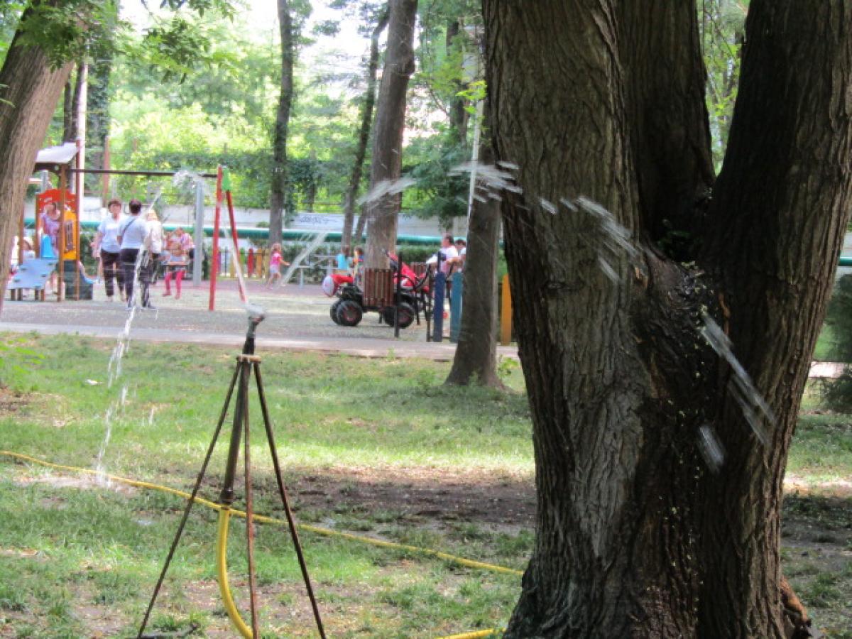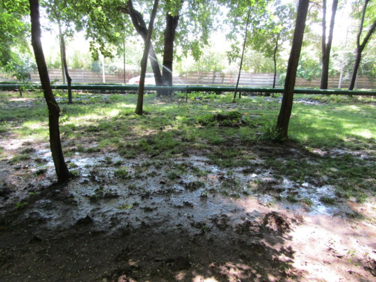 Şi mai sunt două aspecte: spre latura dinspre Şoseaua Buzăului, a parcului, au început să răsară tot felul de lăstari, iar o serie de crengi şi copaci căzuţi la pământ de la ultimele furtuni aşteaptă să fie îndepărtate şi valorificate într-un scop util. Iar irigatul se oprește periodic, preț de circa o oră, pentru umplerea cu apă a unor containere folosite la prepararea betonului. Dar, nu-i aşa, scopul scuză mijloacele…